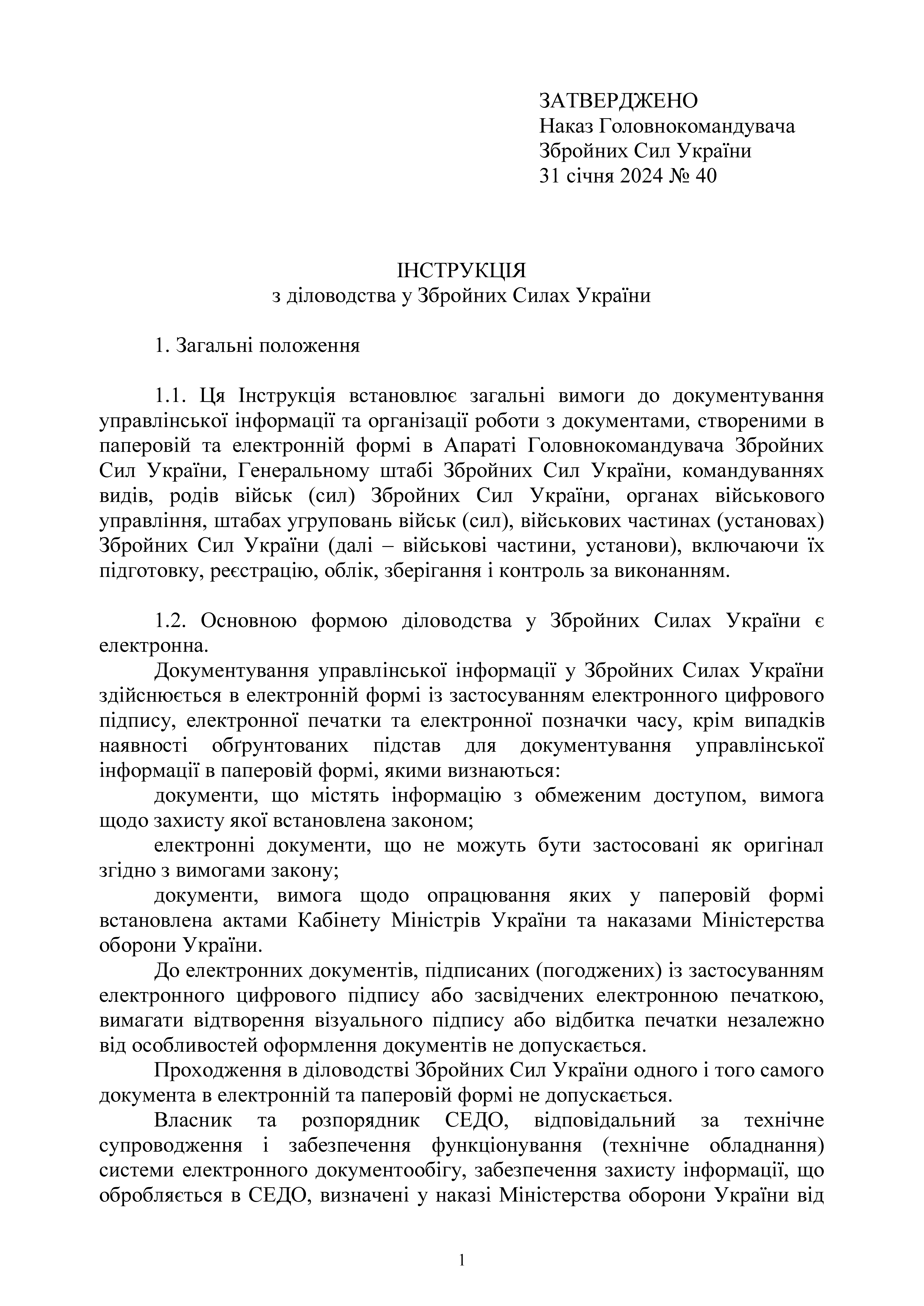 Наказ 40 + Додатки. Інструкція з діловодства у ЗСУ.