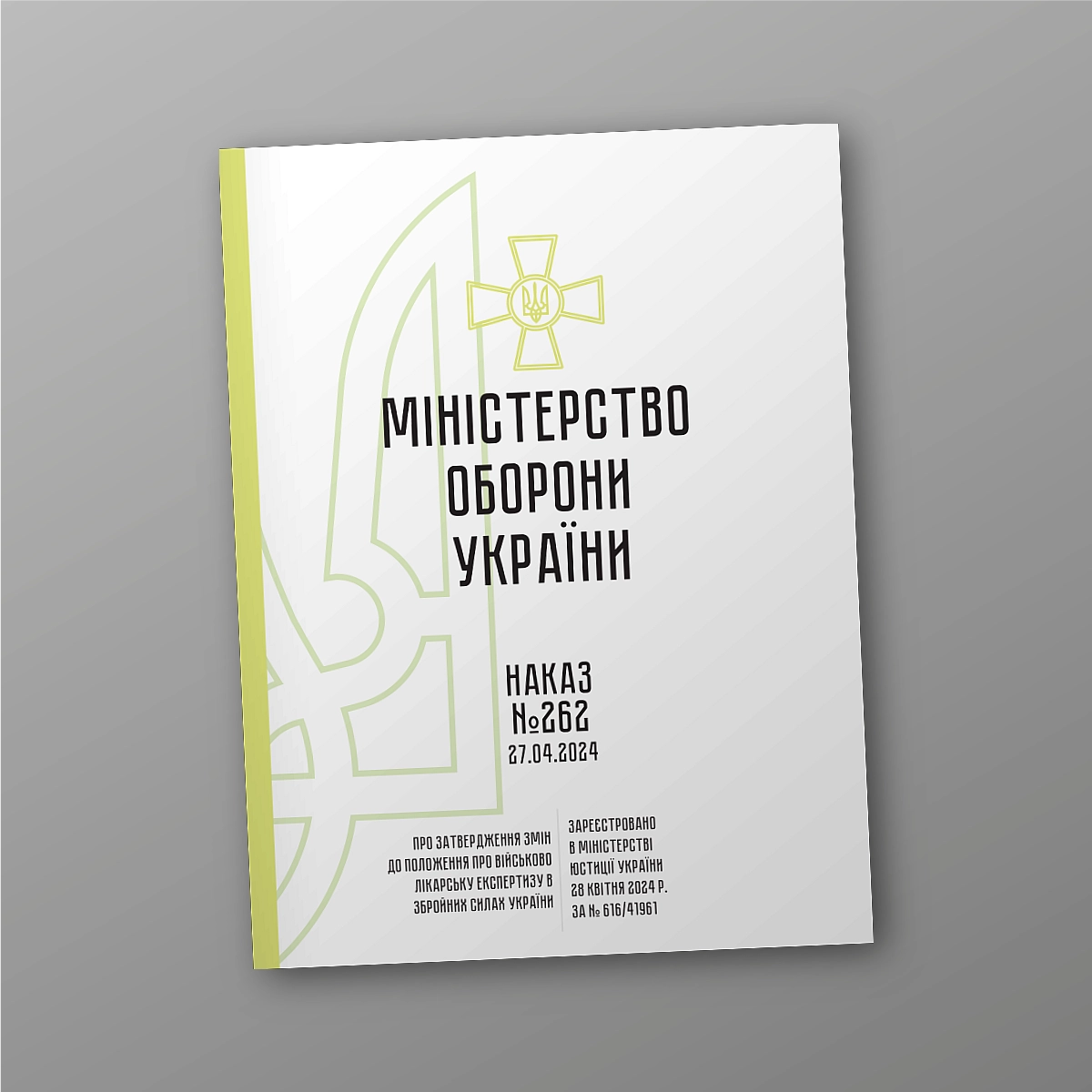 Купити з доставою Наказ 262 Про затвердження Змін до Положення про військово-лікарську експертизу в Збройних Силах України. .