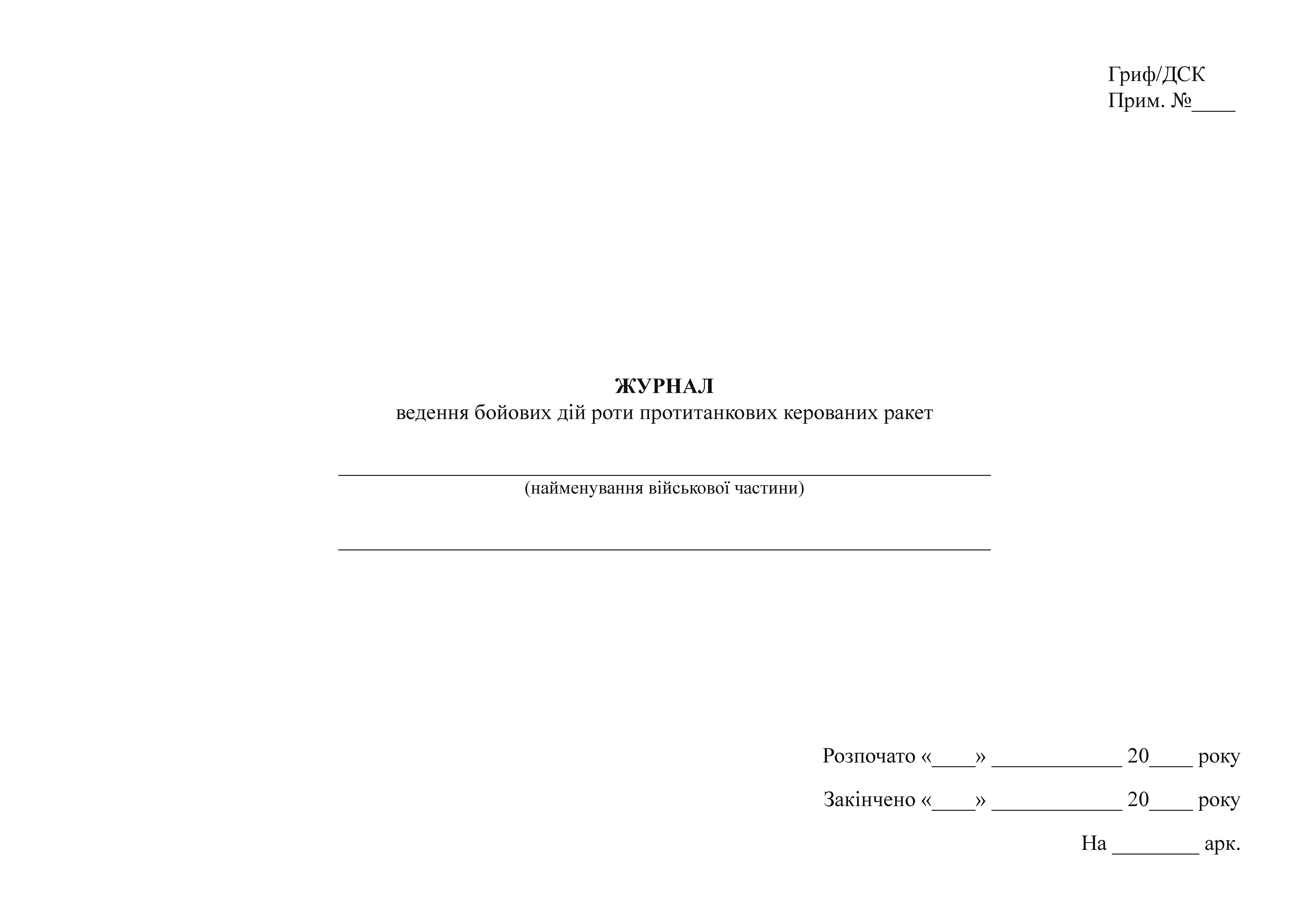 Журнал ведення бойових дій роти протитанкових керованих ракет.