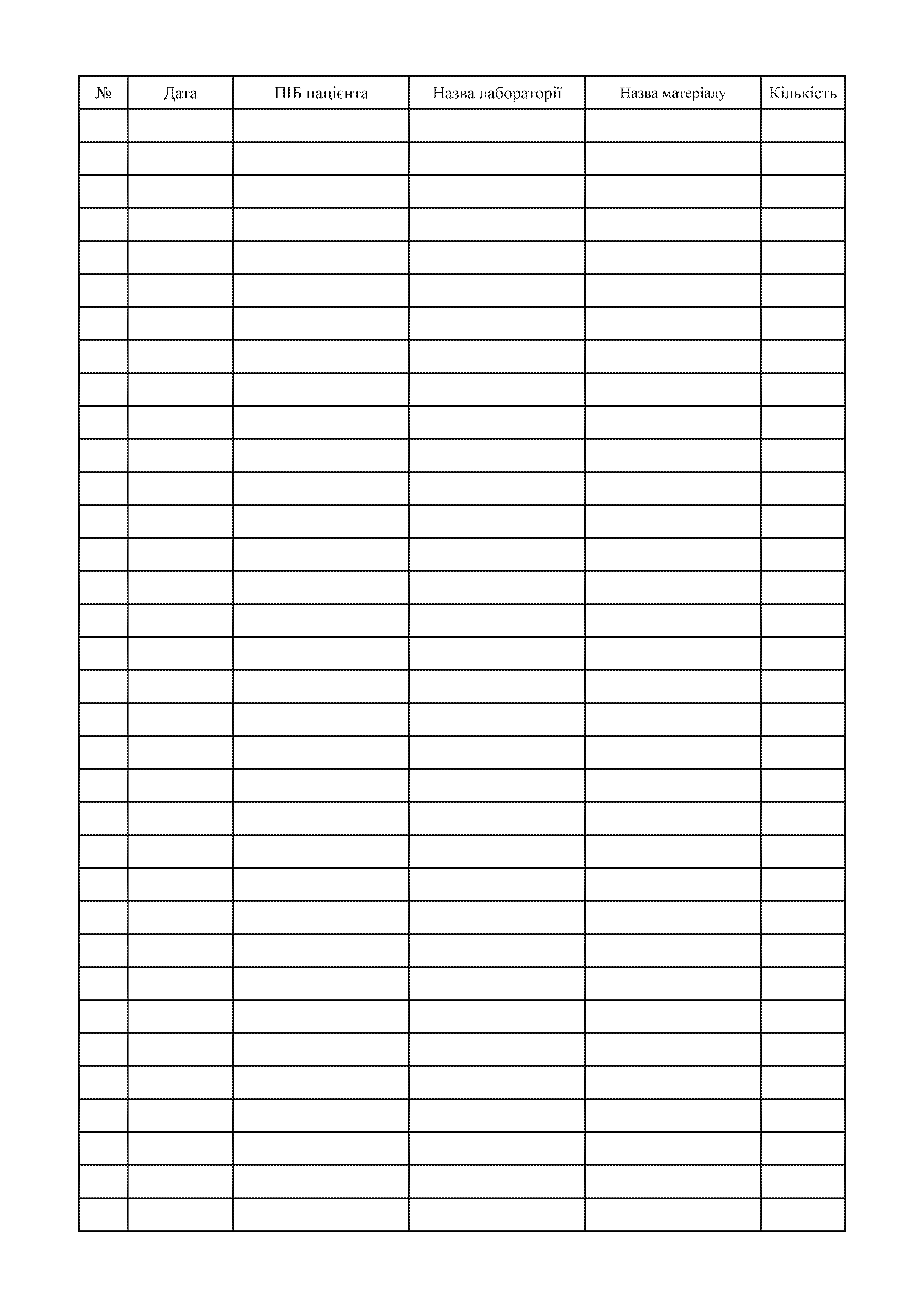 Журнал ведення обліку забору аналізів та відправлення на лабораторію.