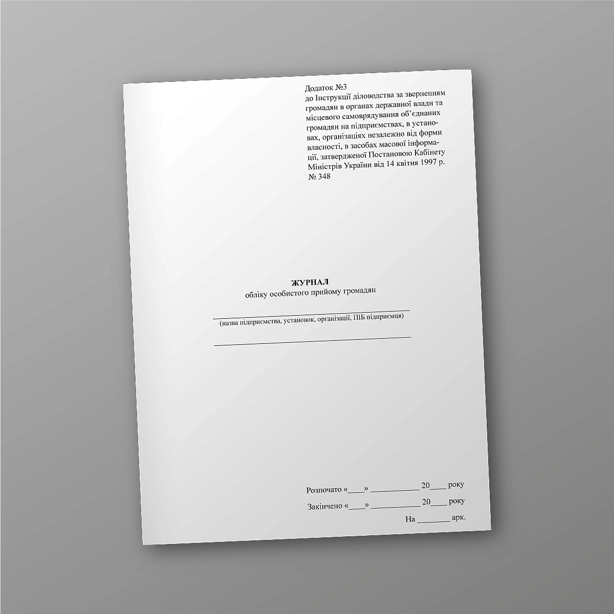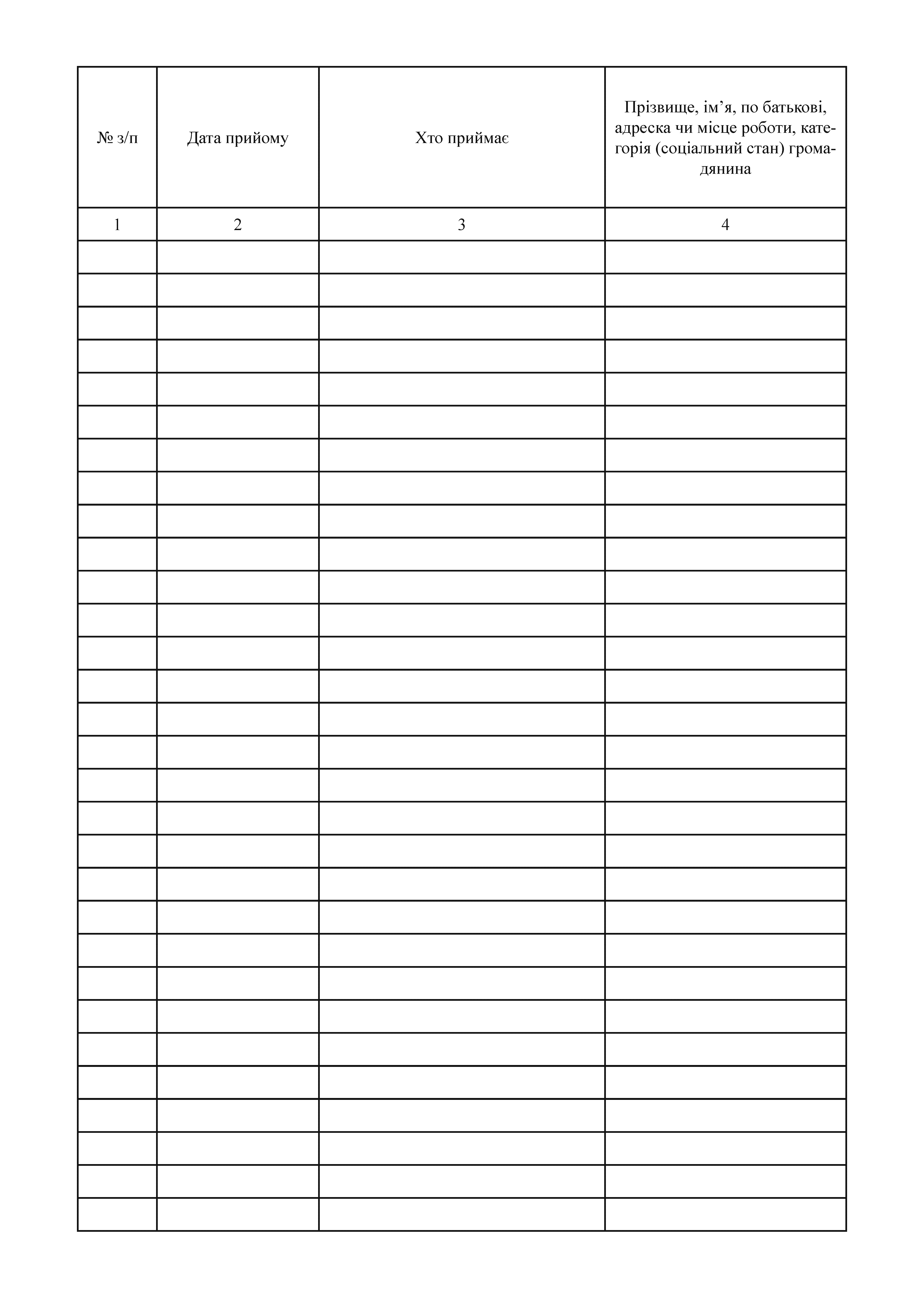 Журнал обліку особистого прийому громадян КМУ 348 Додаток 3.