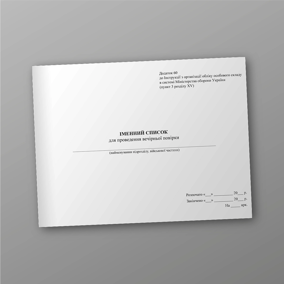 Журнал або книга військового, медичного обліку може бути виконана в м'якій або твердій обкладинці. Якщо Ви не знайшли потрібну книгу обліку для ЗСУ, МВС або кількість сторінок потрібно зробити під ваше завдання, напишіть нам на е-мейл [email protected], і ми обов`язково з Вами зв`яжемося.