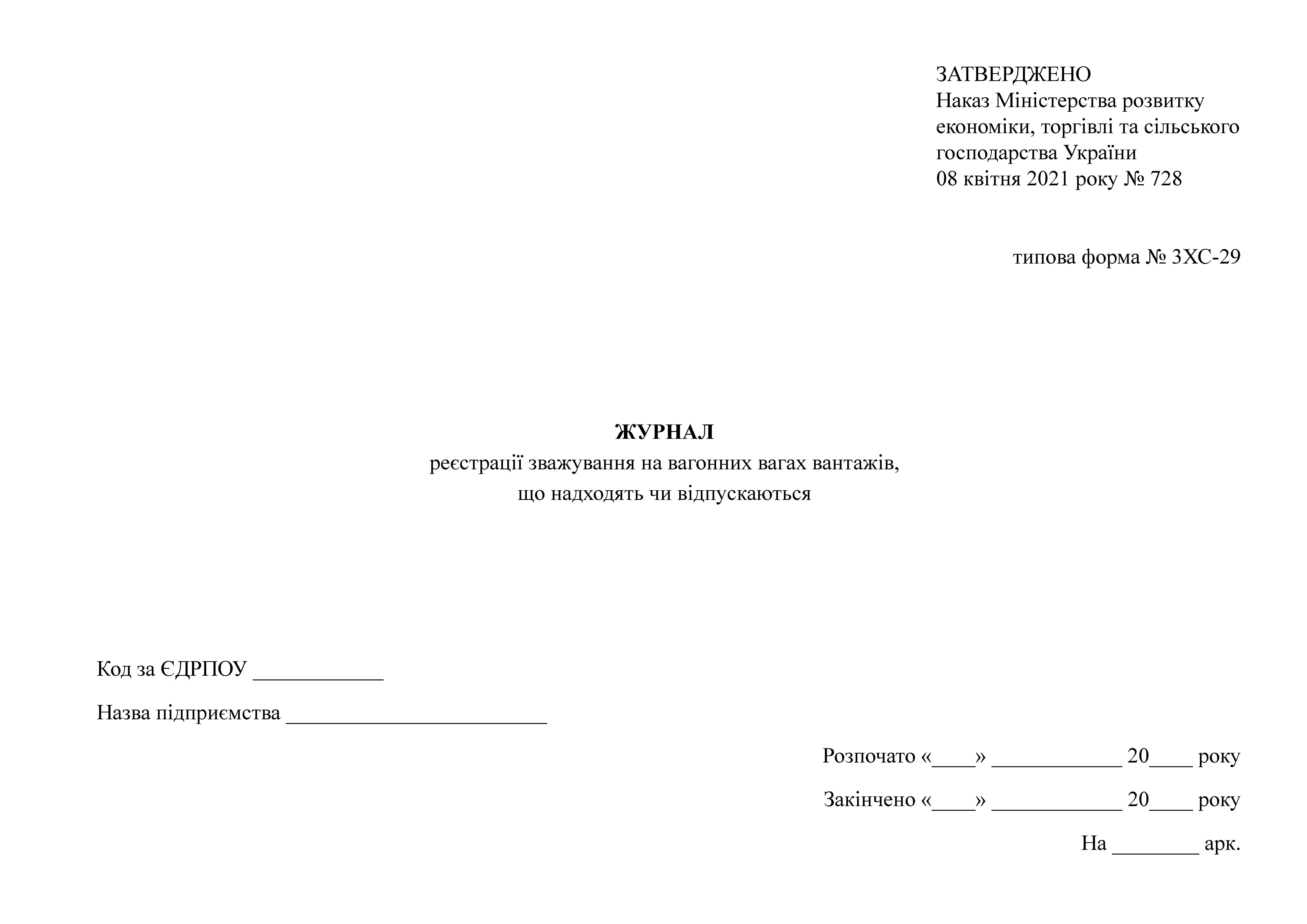 Журнал реєстрації зважування на вагонних вагах вантажів, що надходять чи відпускаються .