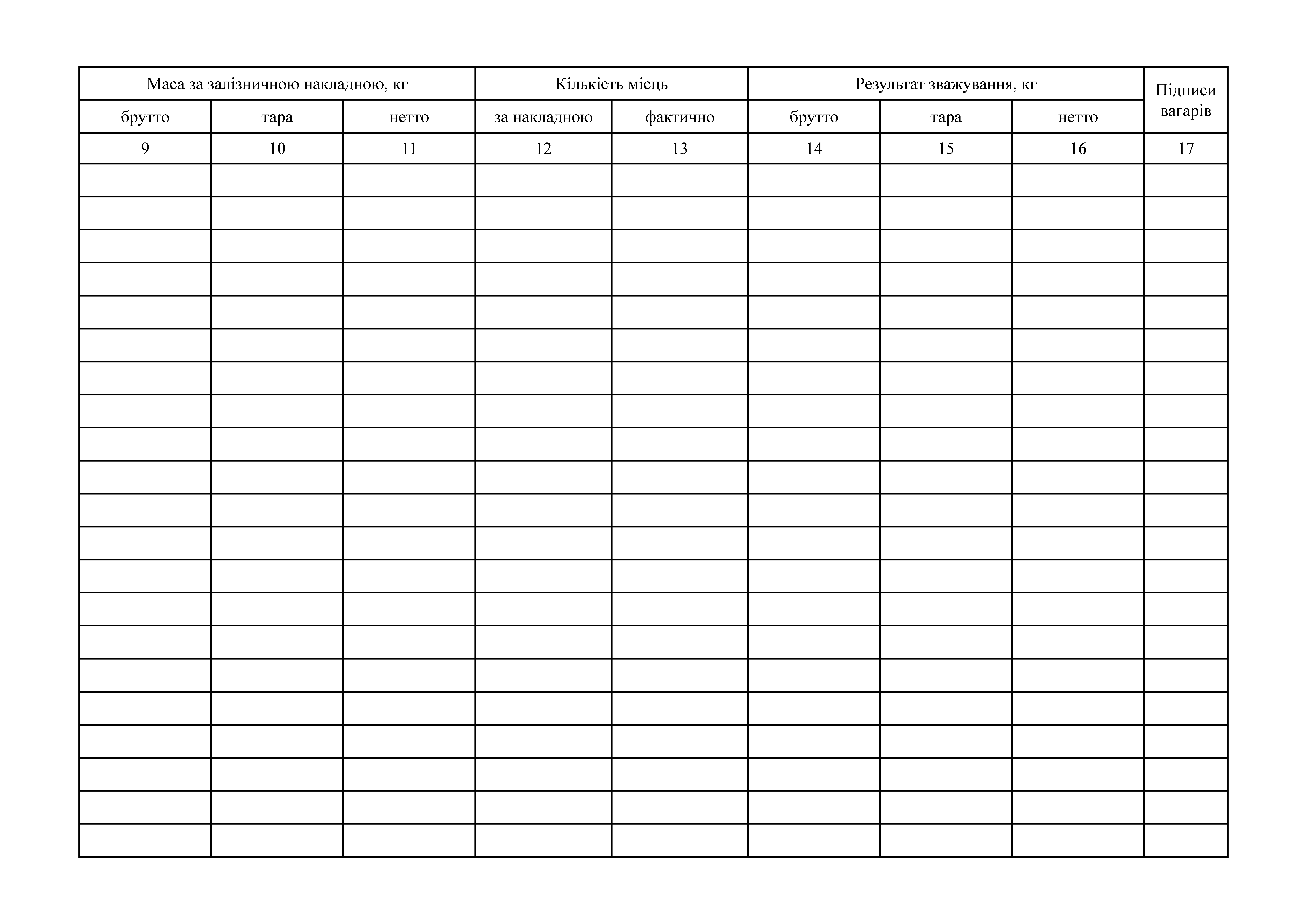 Журнал реєстрації зважування на вагонних вагах вантажів, що надходять чи відпускаються.