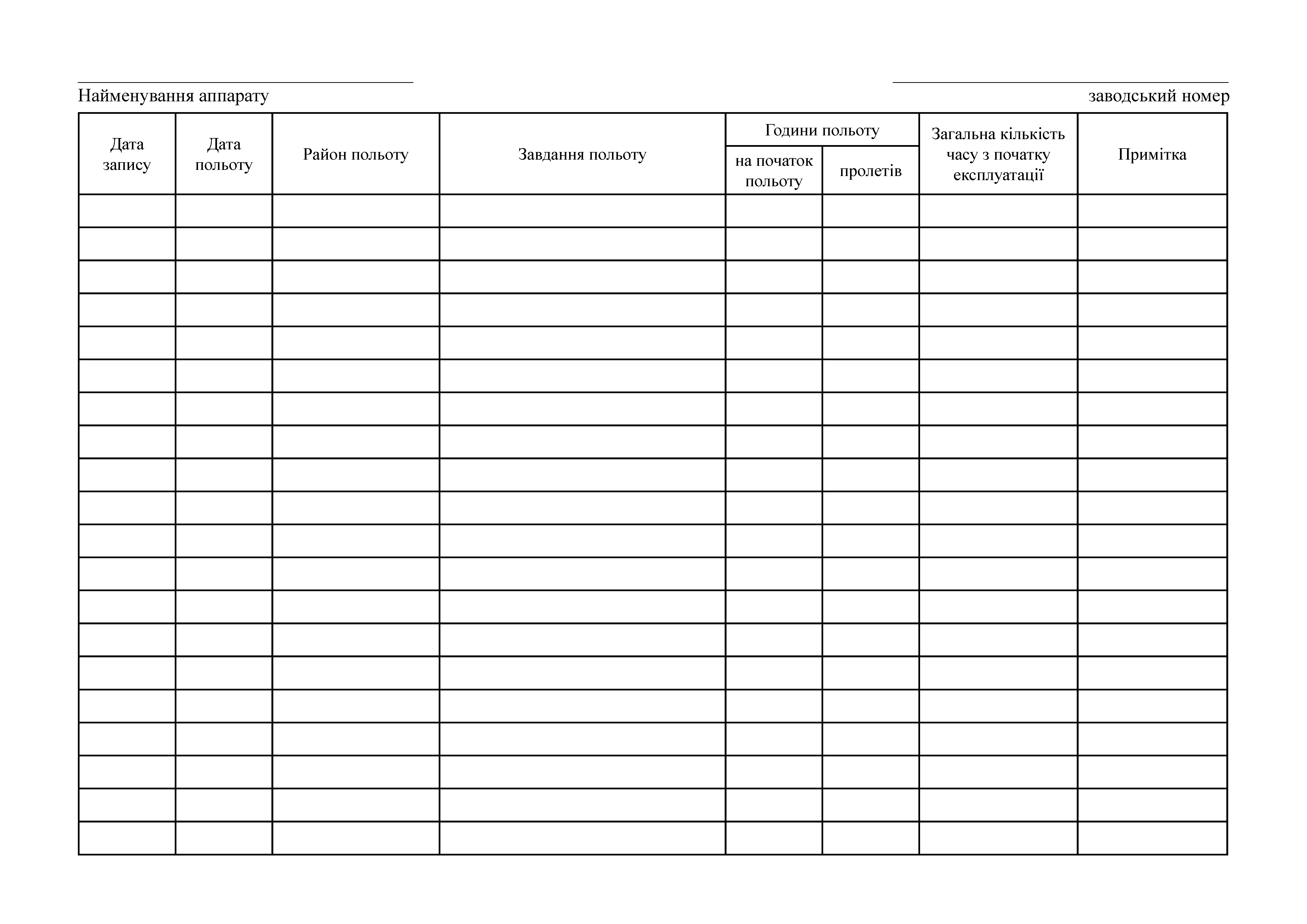 Журнал обліку нальоту безпілотних літальних апаратів.