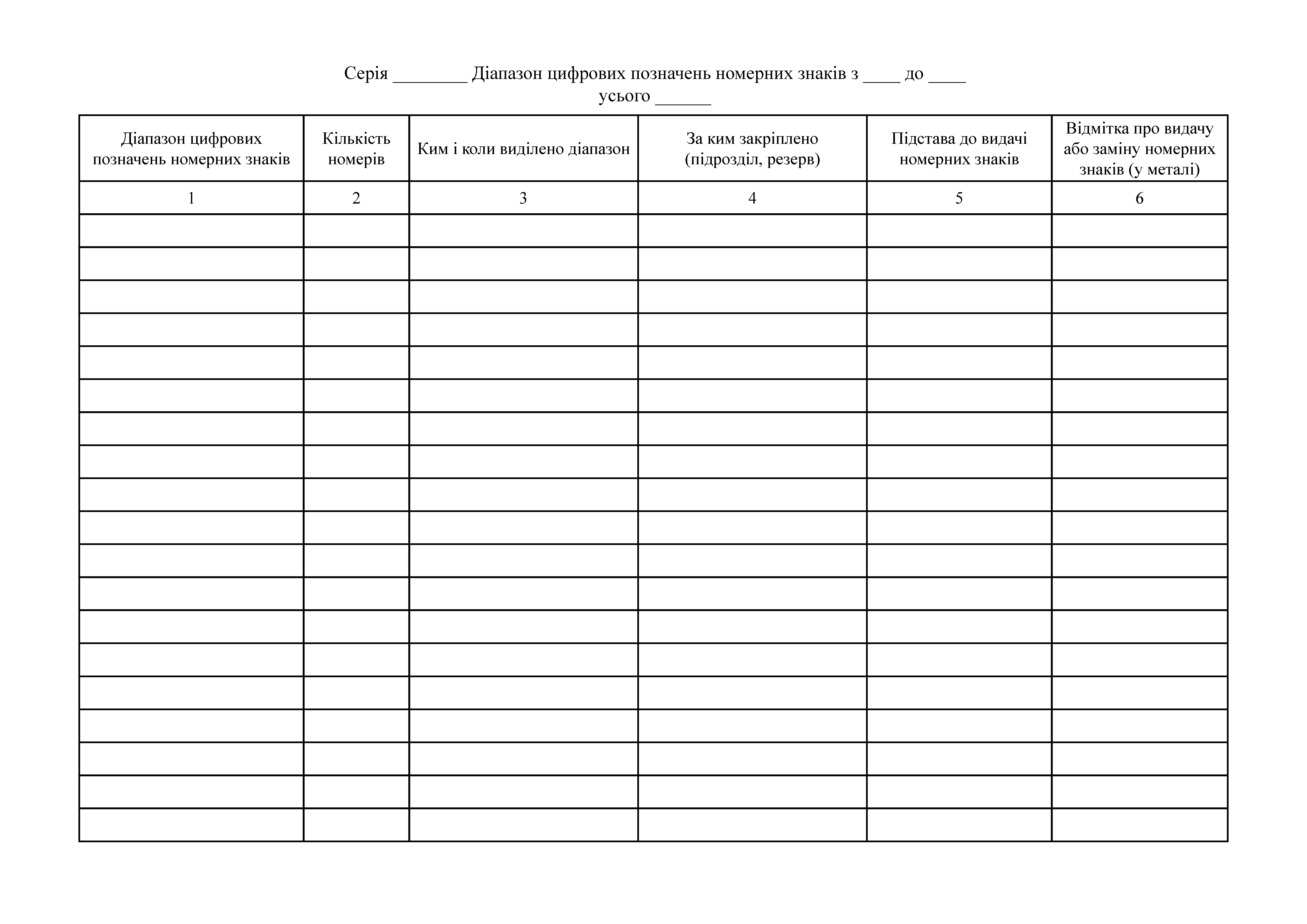 Книга обліку діапазонів номерних знаків машин і причепів Наказ 184 Додаток 3.