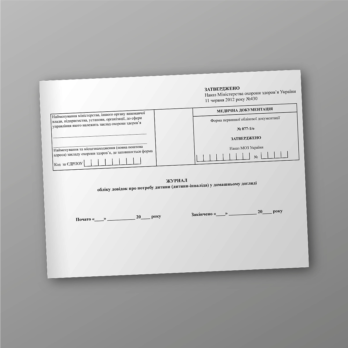 Документація для забезпечення медичного обліку. Якщо Ви не знайшли потрібну книгу або журнал обліку МОЗ або кількість сторінок потрібно зробити під ваше завдання, напишіть нам на e-mail [email protected], і ми обов'язково зв'яжемося з Вами.