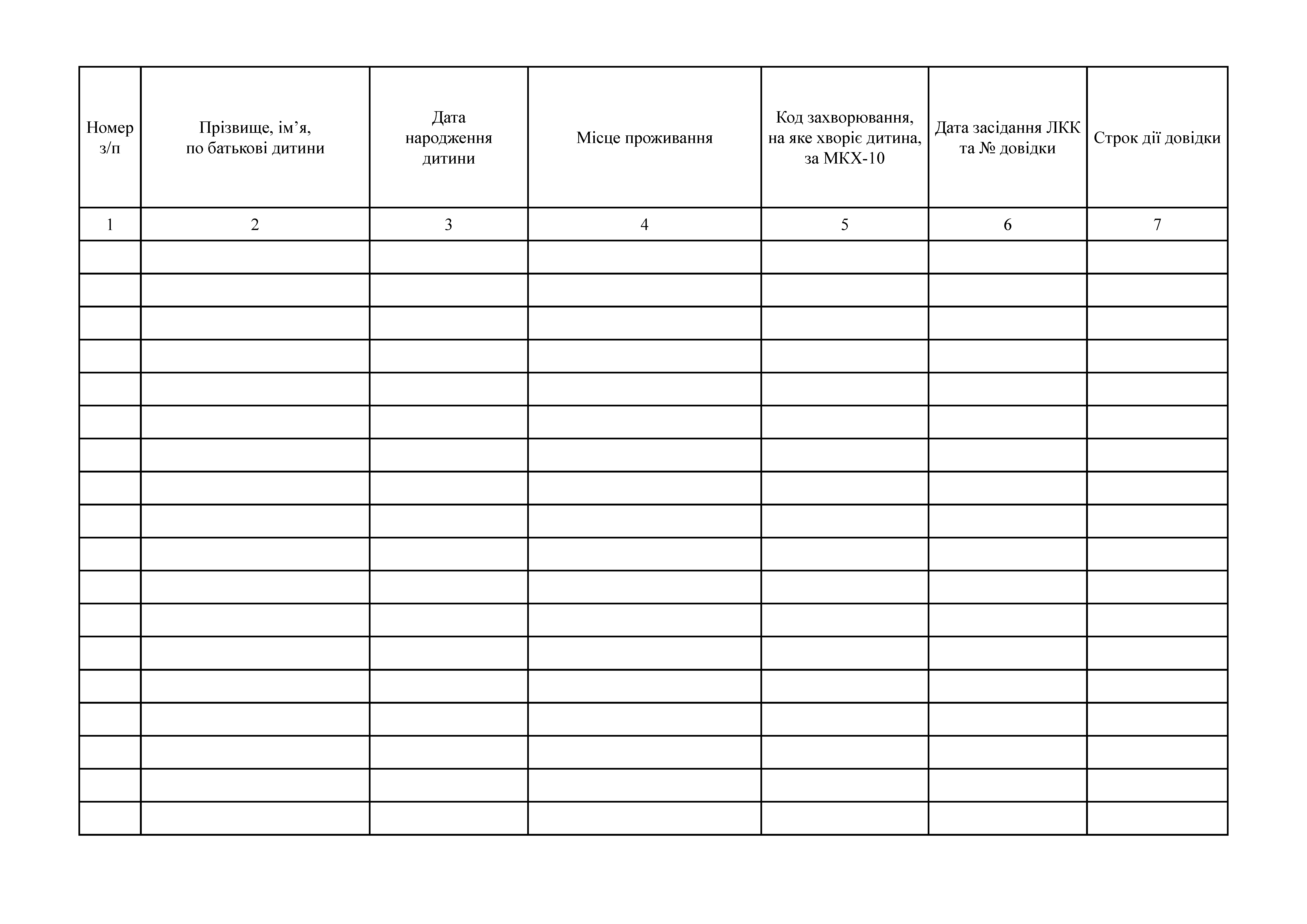 Журнал обліку довідок про потребу дитини (дитини-інваліда) у домашньому догляді.