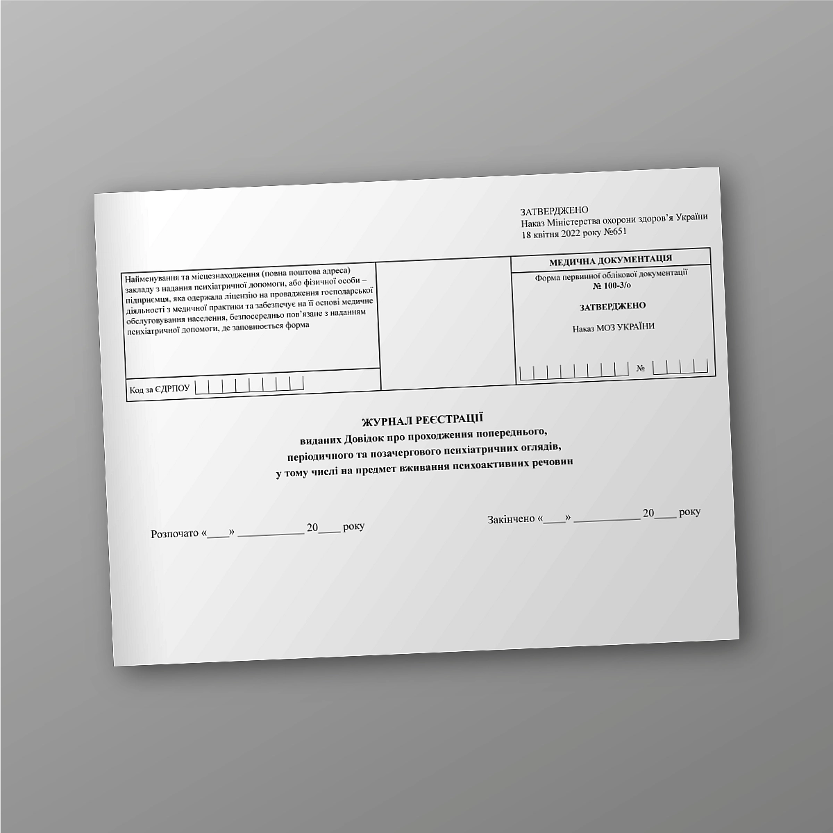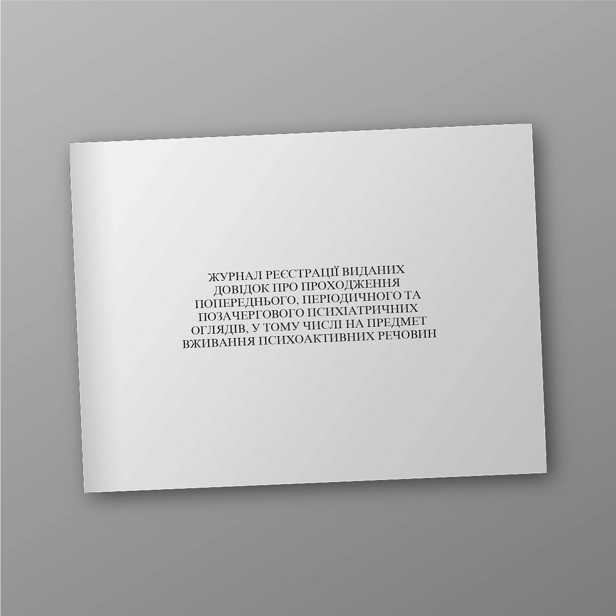 Замовити Журнал реєстрації виданих Довідок про проходження попереднього, періодичного та позачергового психіатричних оглядів, у тому числі на предмет вживання психоактивних речовин.