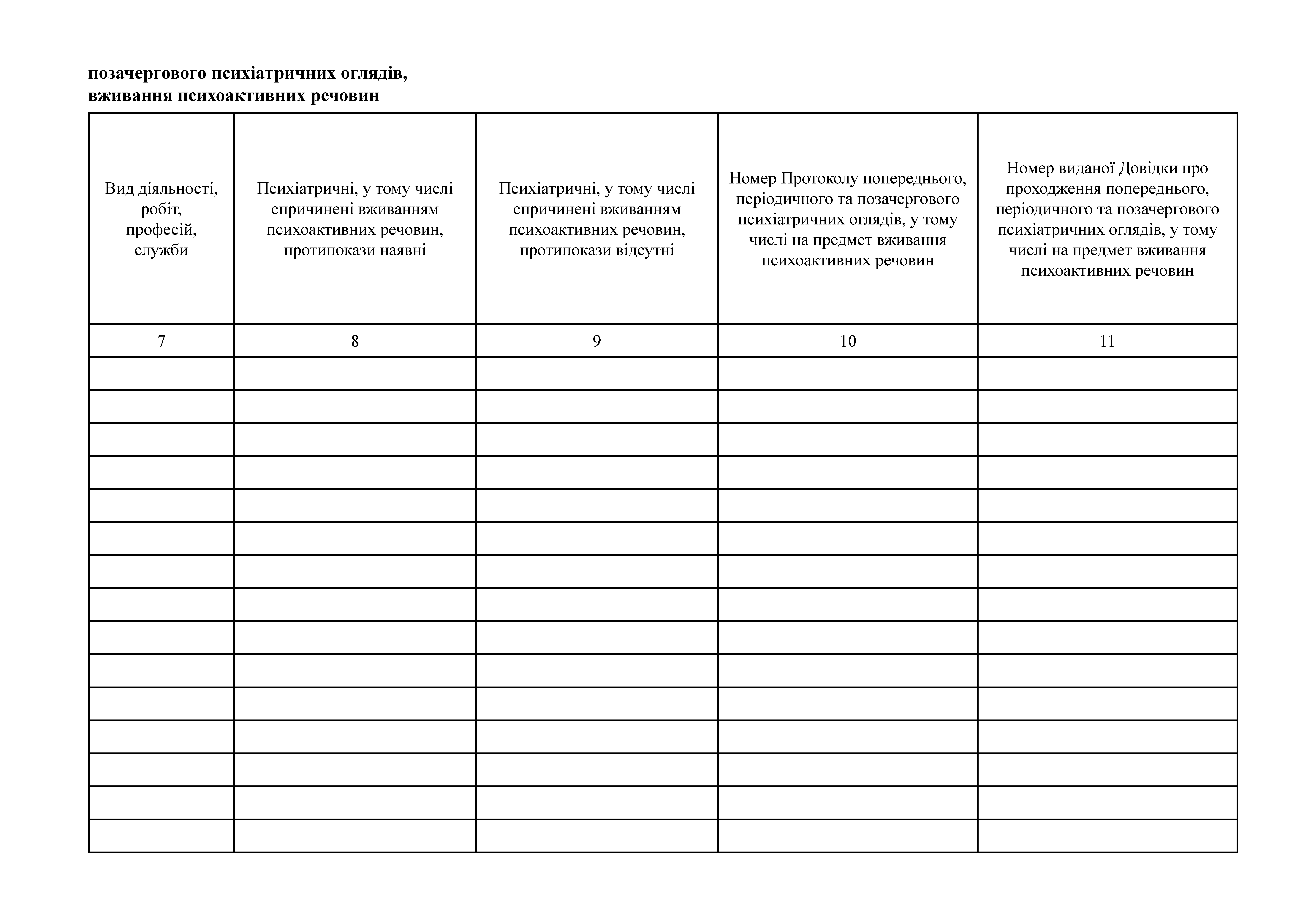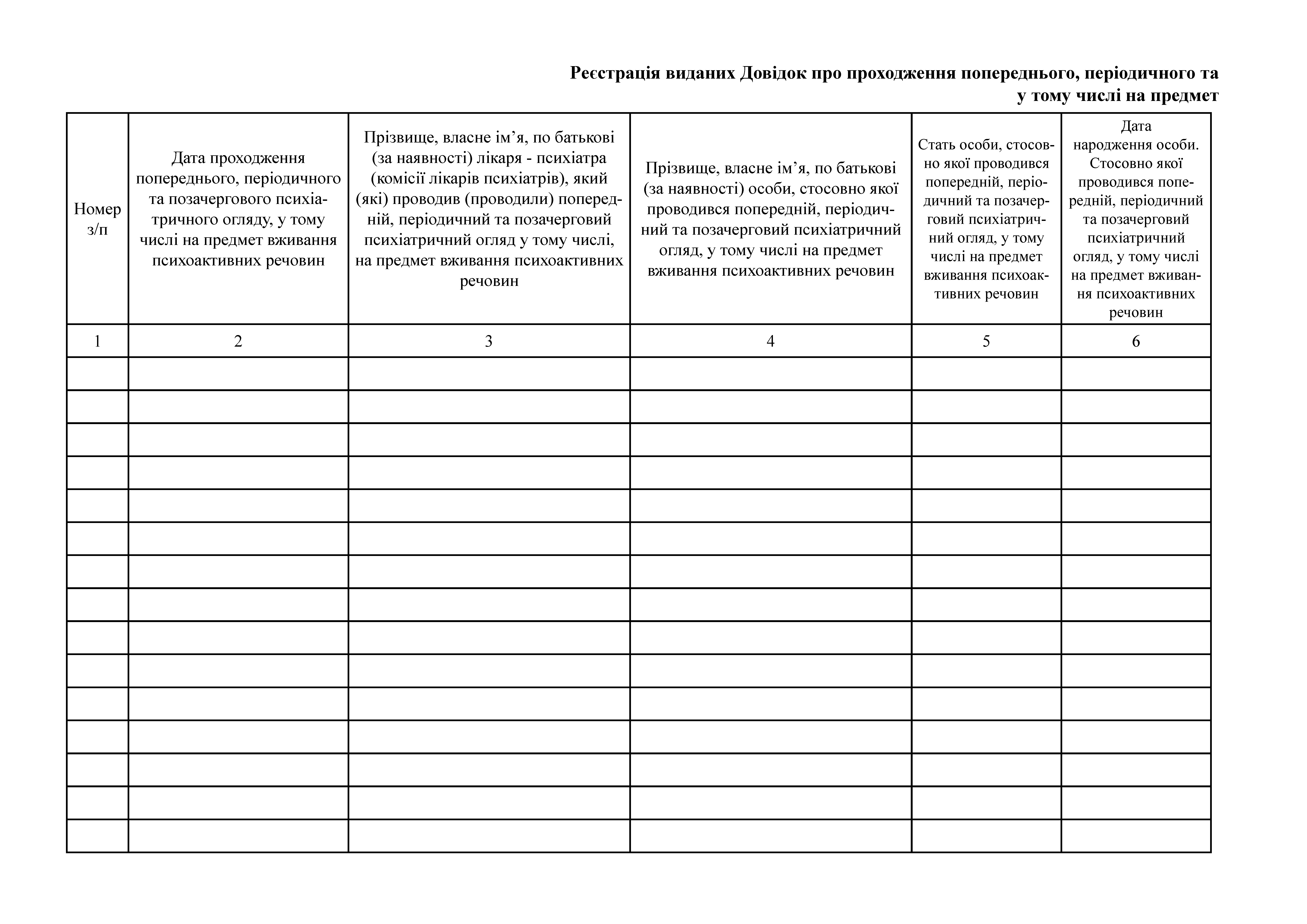 Журнал реєстрації виданих Довідок про проходження попереднього, періодичного та позачергового психіатричних оглядів, у тому числі на предмет вживання психоактивних речовин.