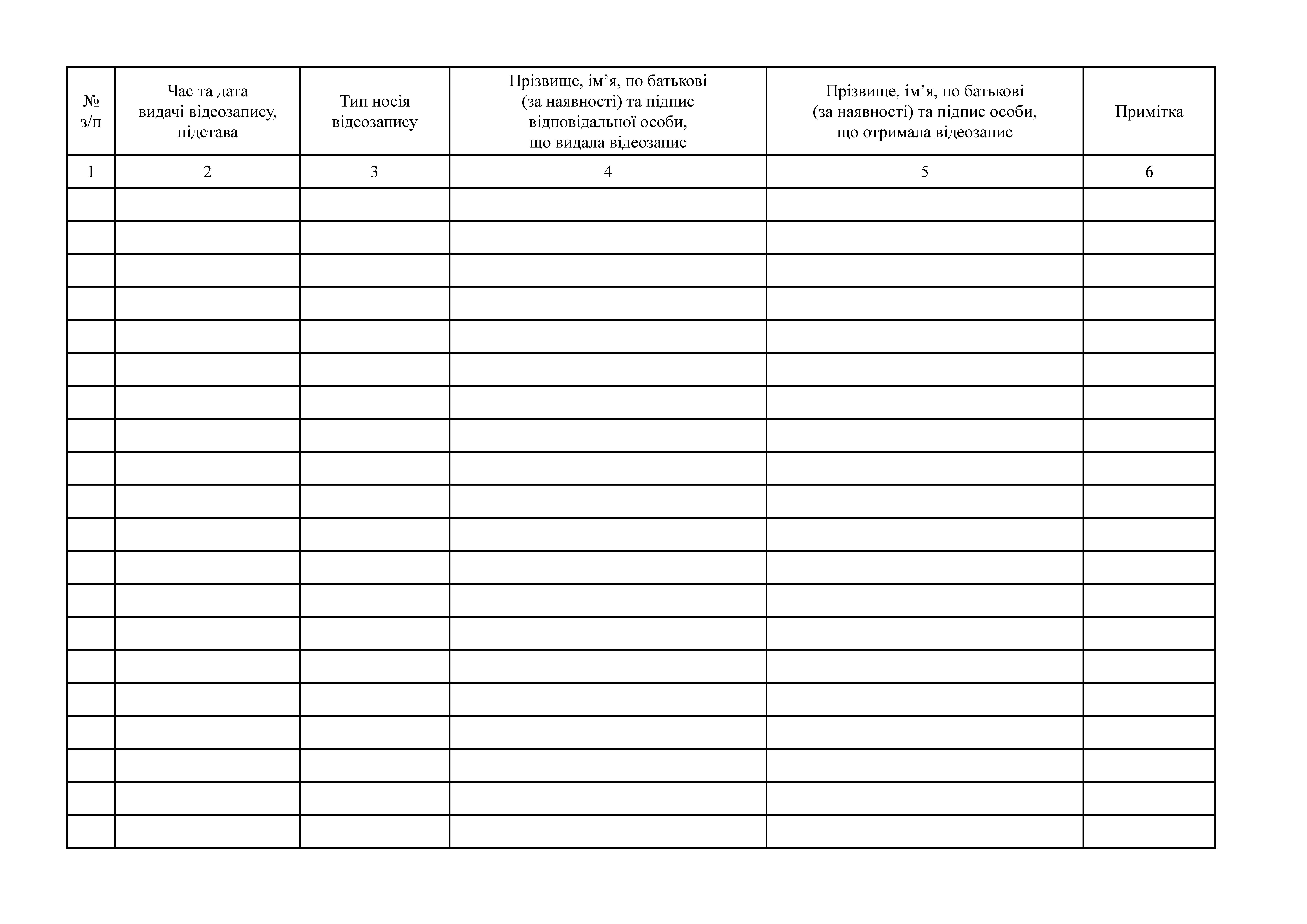 Журнал обліку копіювання та видачі відеозаписів зі стаціонарної системи технічних приладів і технічних засобів фото- та відеозапису.