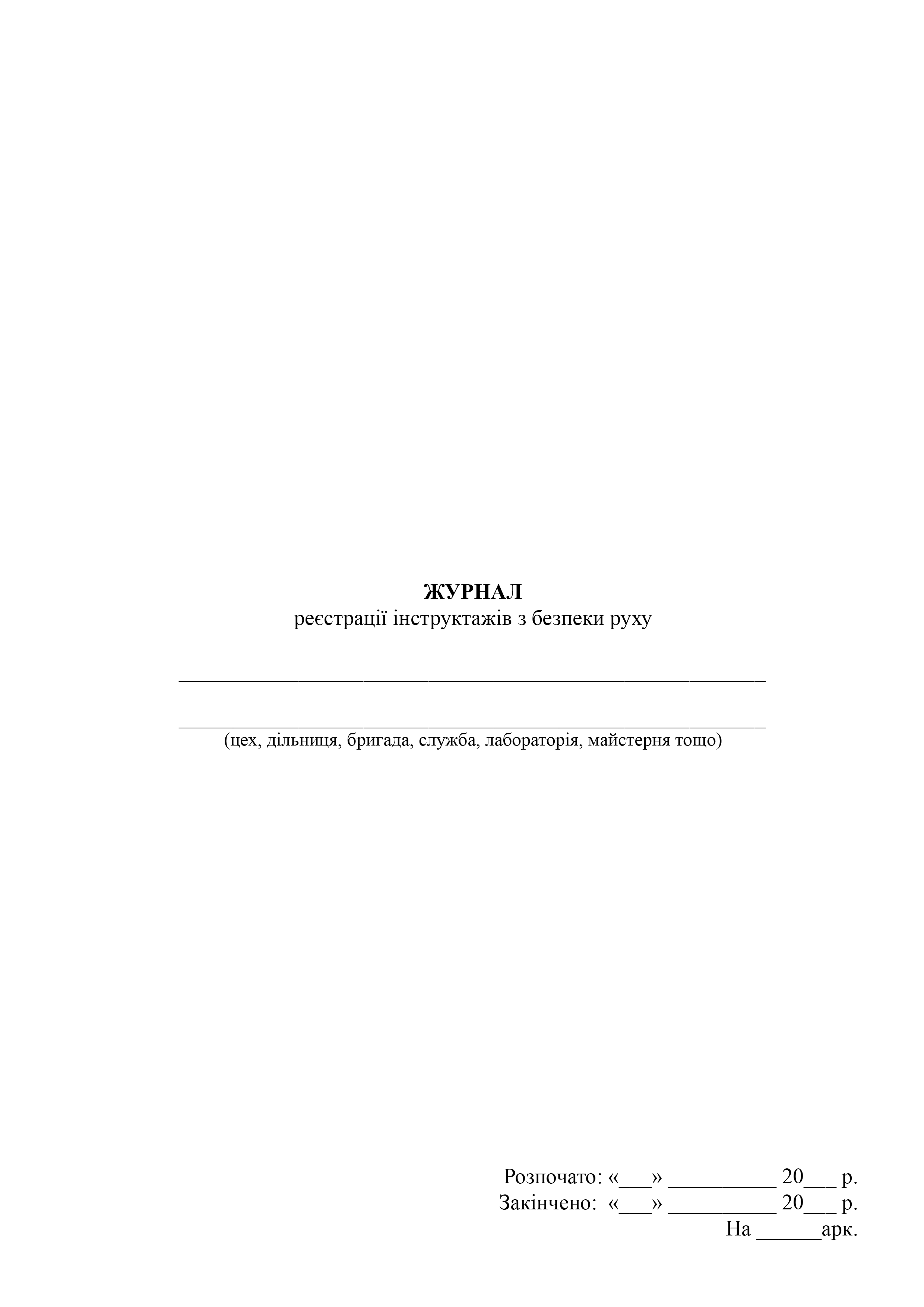 Замовити з доставою Журнал реєстрації інструктажів з безпеки руху.
