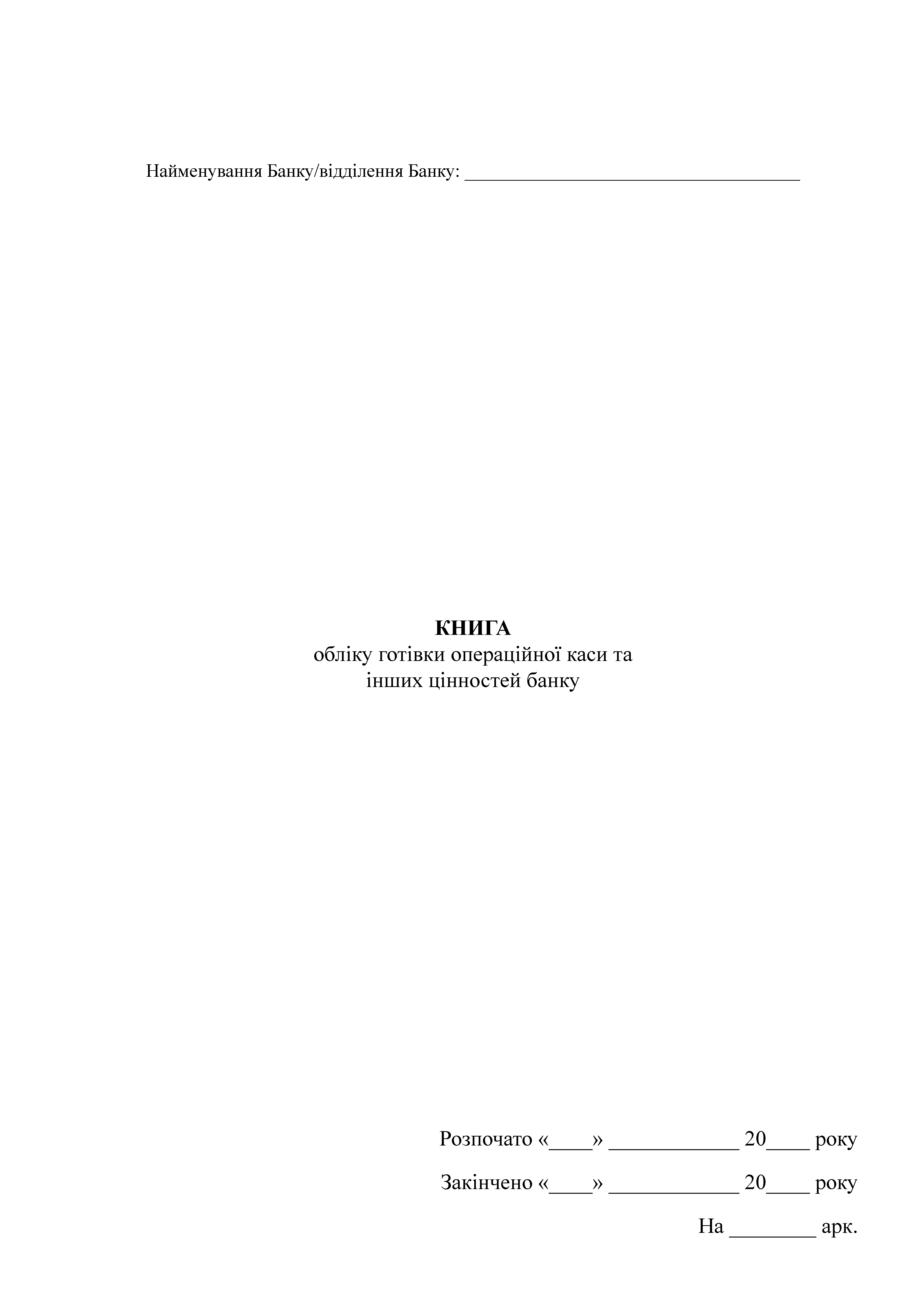 Книга обліку готівки операційної каси та інших цінностей банку.