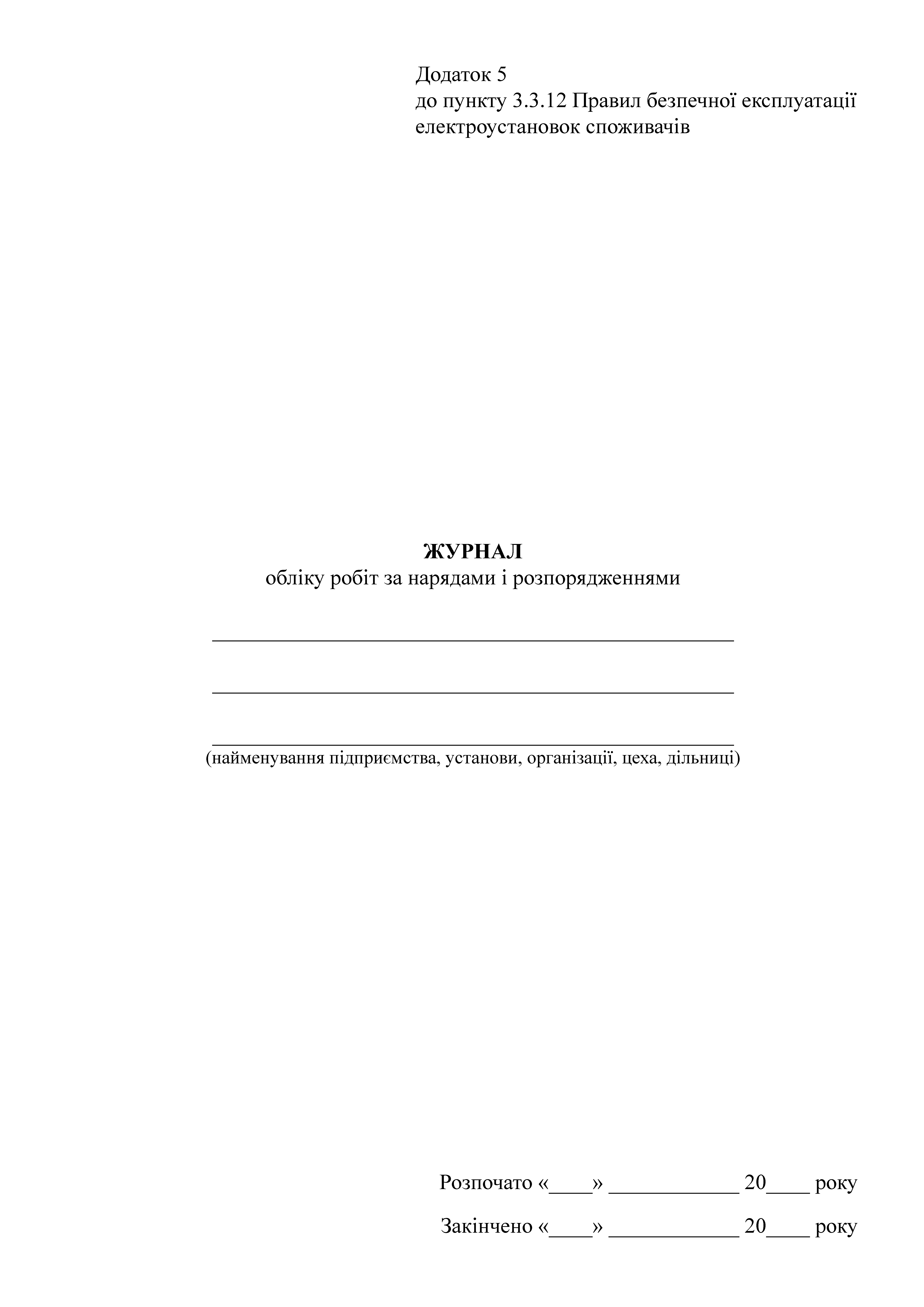 Журнал обліку робіт за нарядами і розпорядженнями.