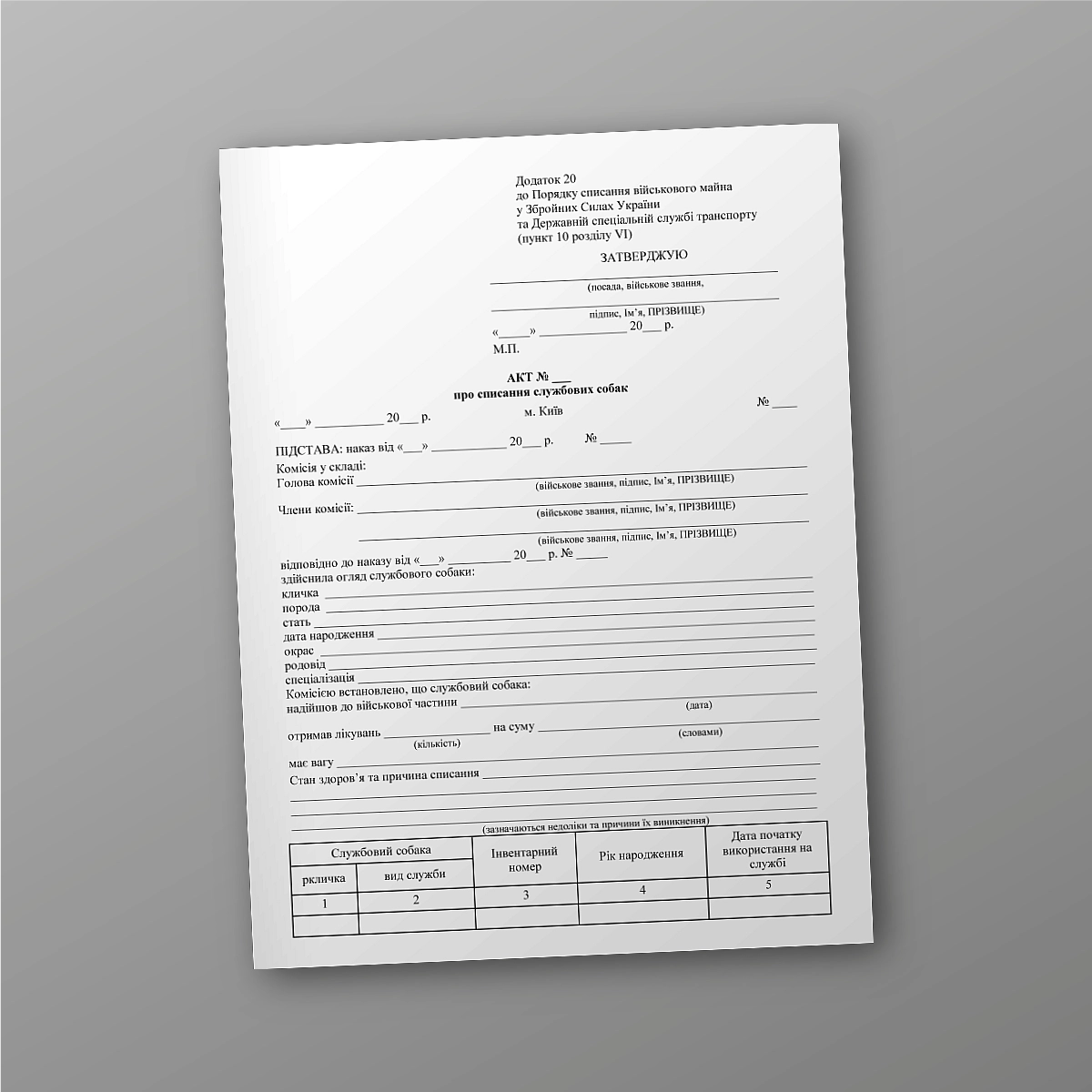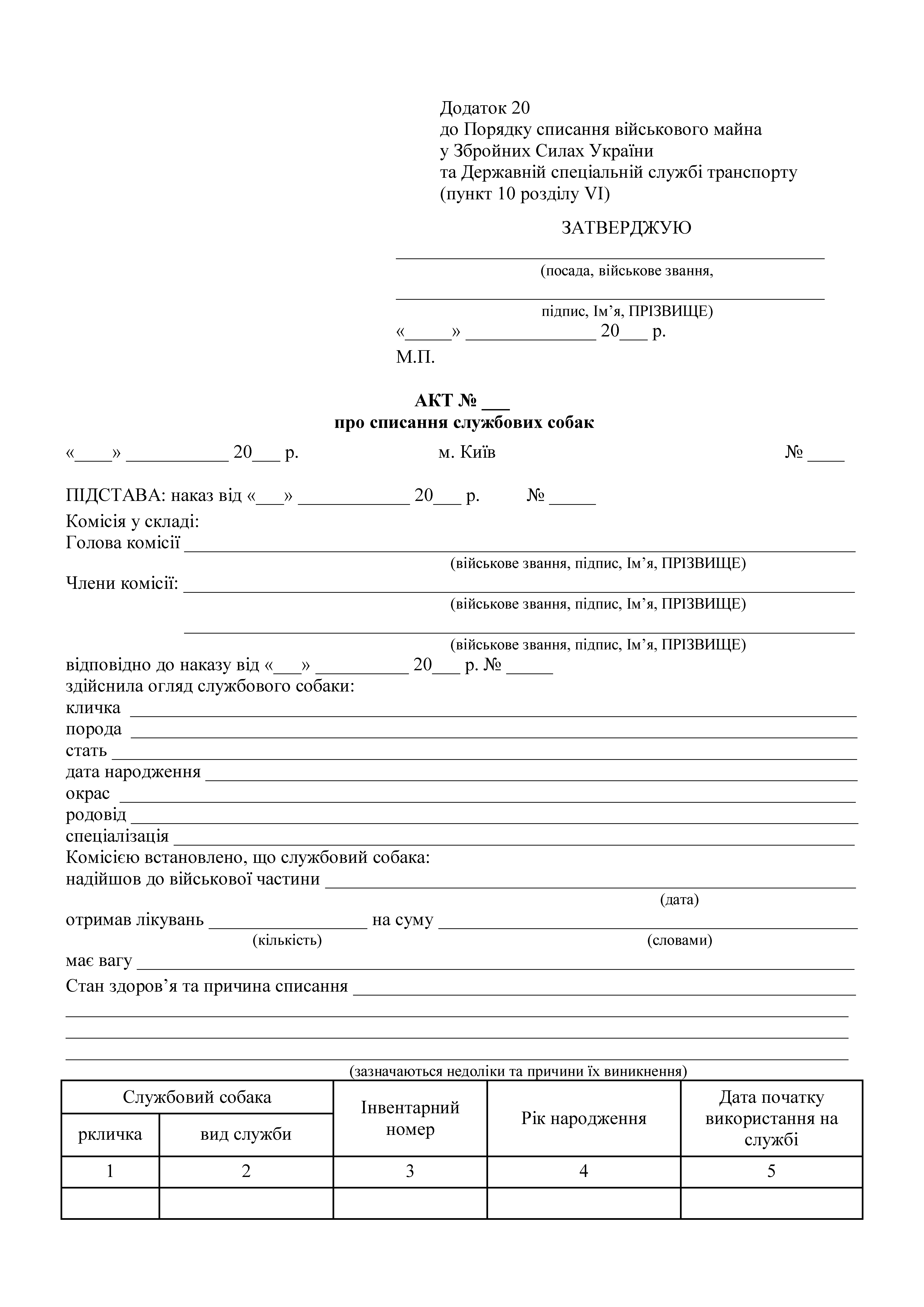 Купити Акт про списання службових собак.