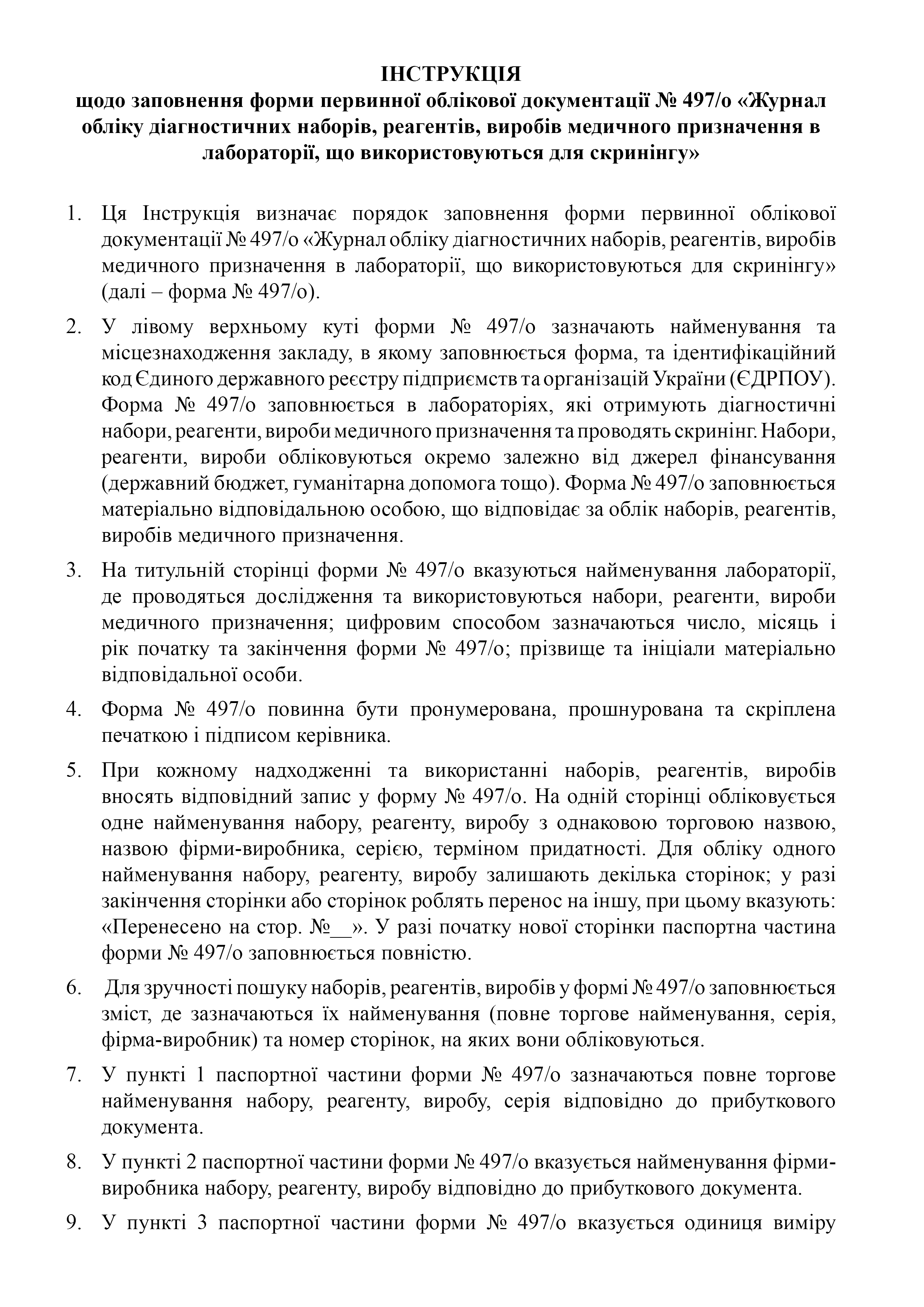 Журнал обліку діагностичних наборів, реагентів, виробів медичного призначення в лабораторії, що використовуються для скринінгу.