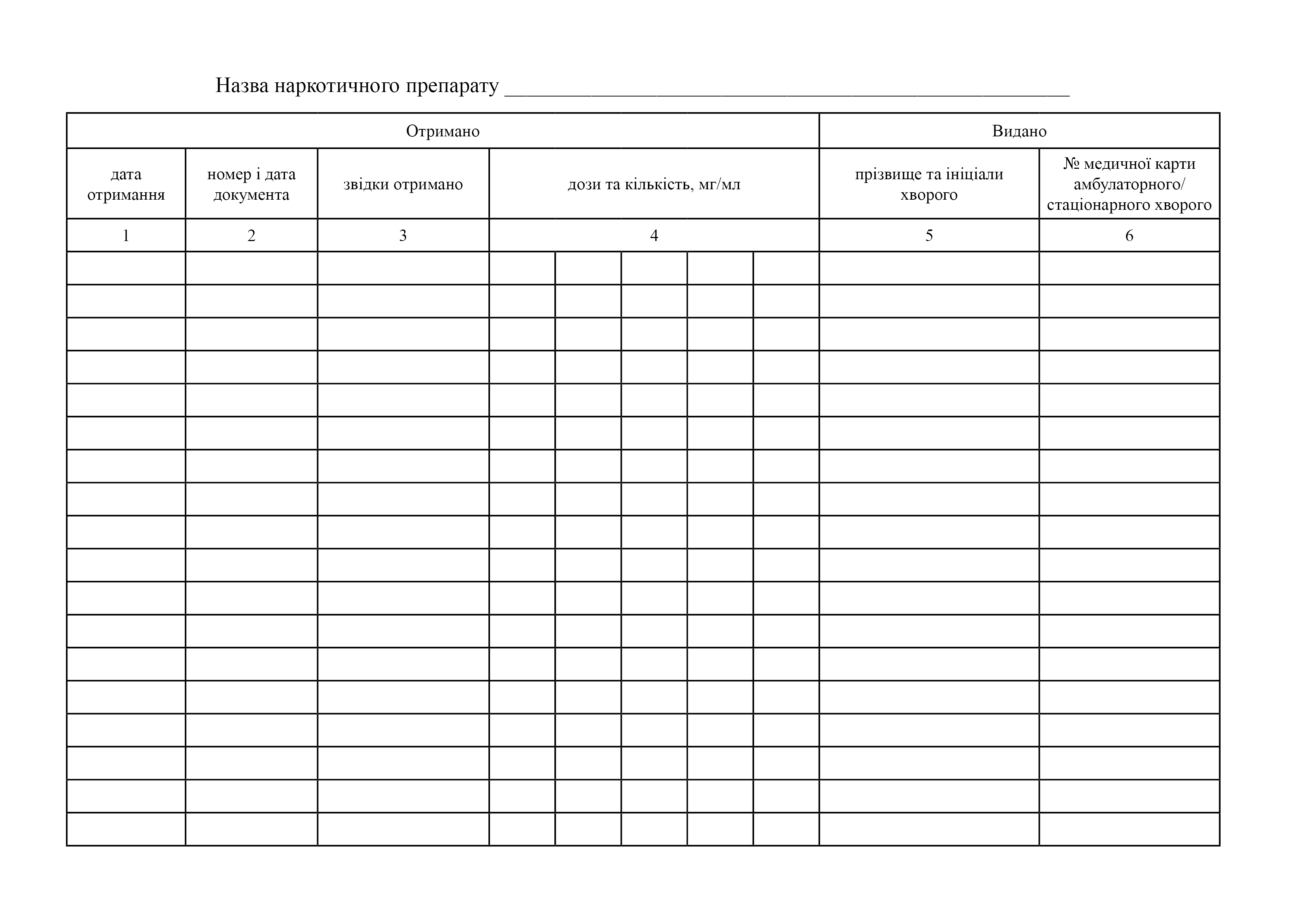 Журнал обліку наркотичних препаратів в кабінетах замісної підтримувальної терапії закладу охорони здоров'я.