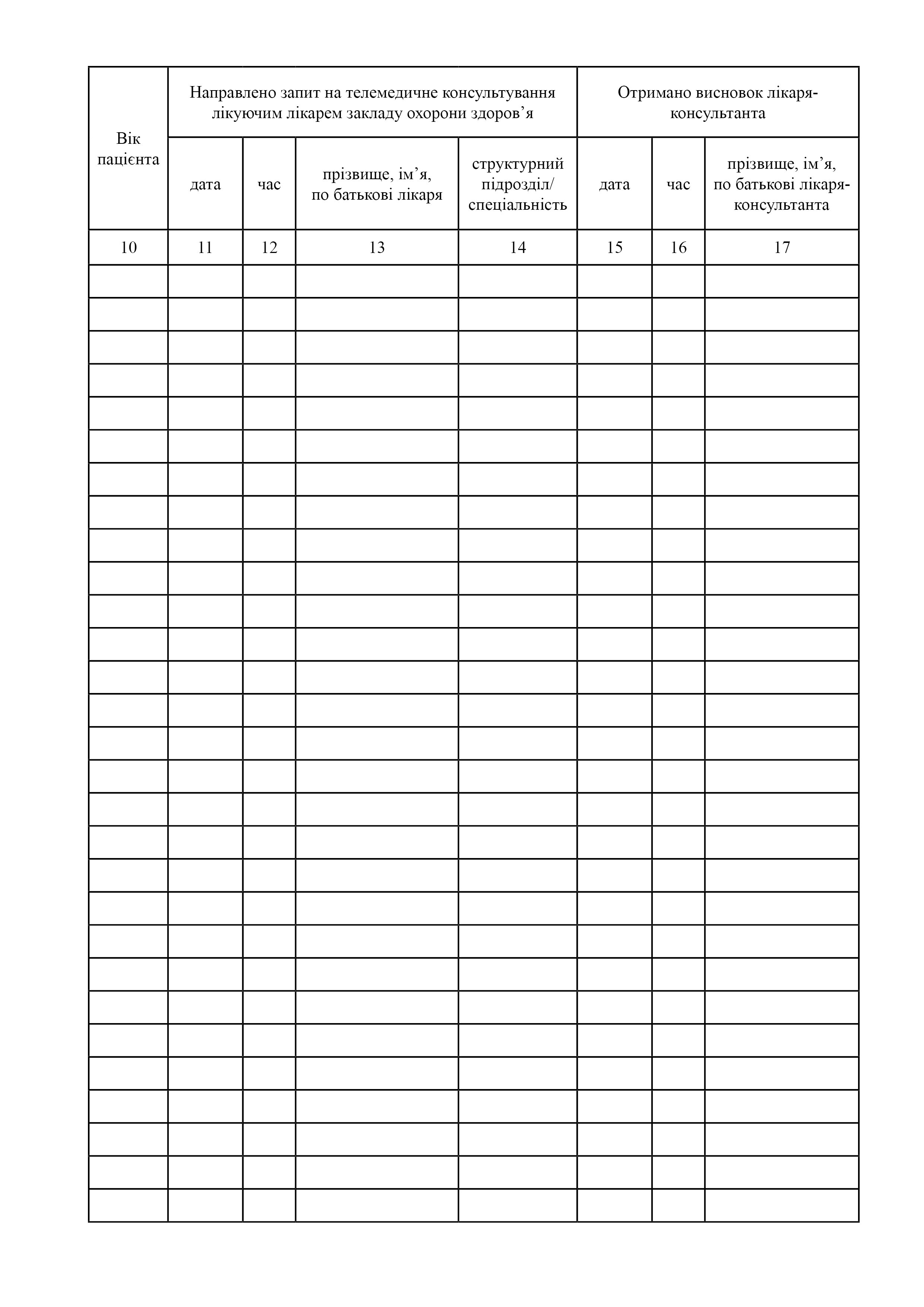 Журнал обліку телемедичних консультацій.