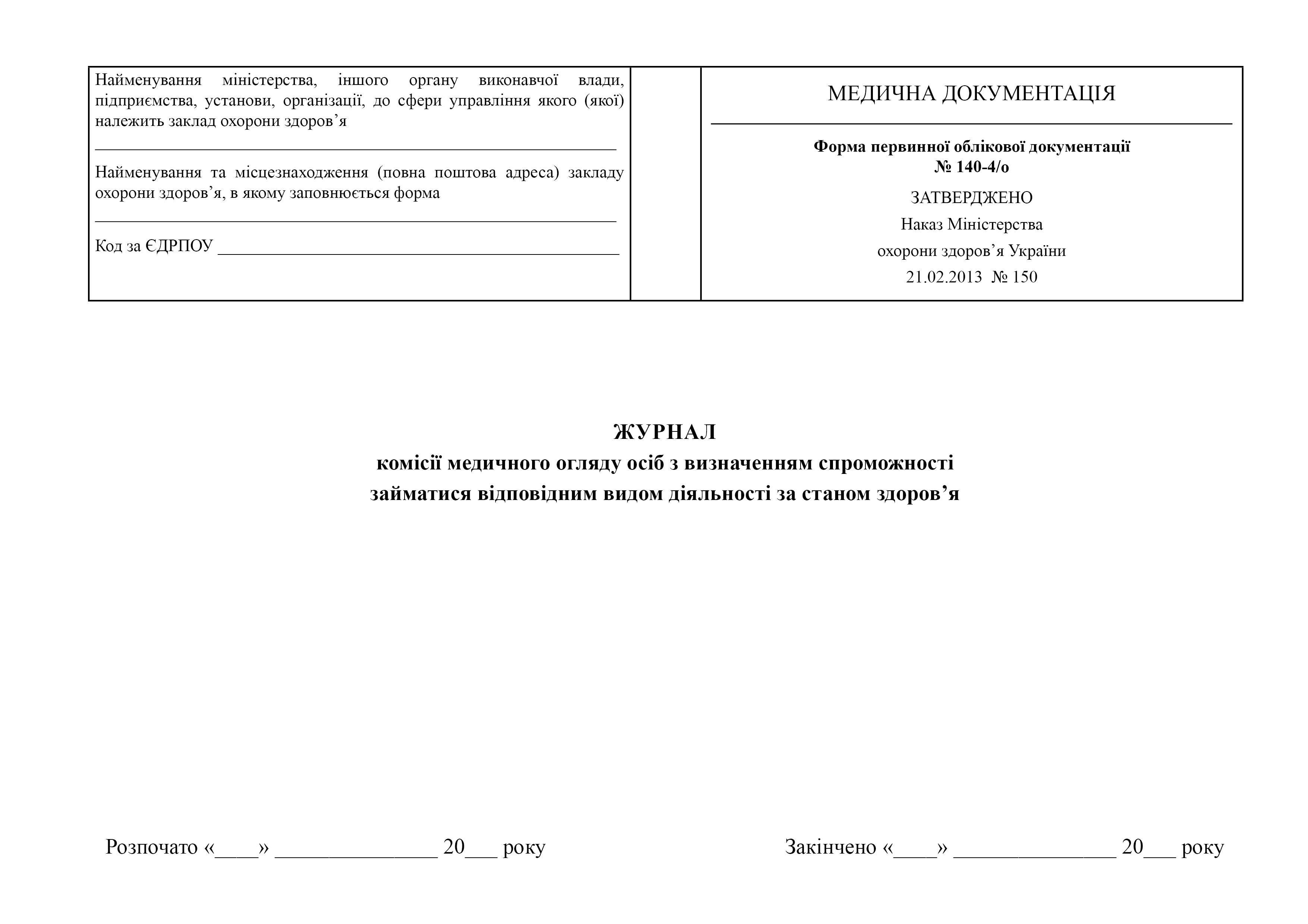 Журнал комісії медичного огляду осіб з визначенням спроможності займатися відповідним видом діяльності за станом здоров'я.