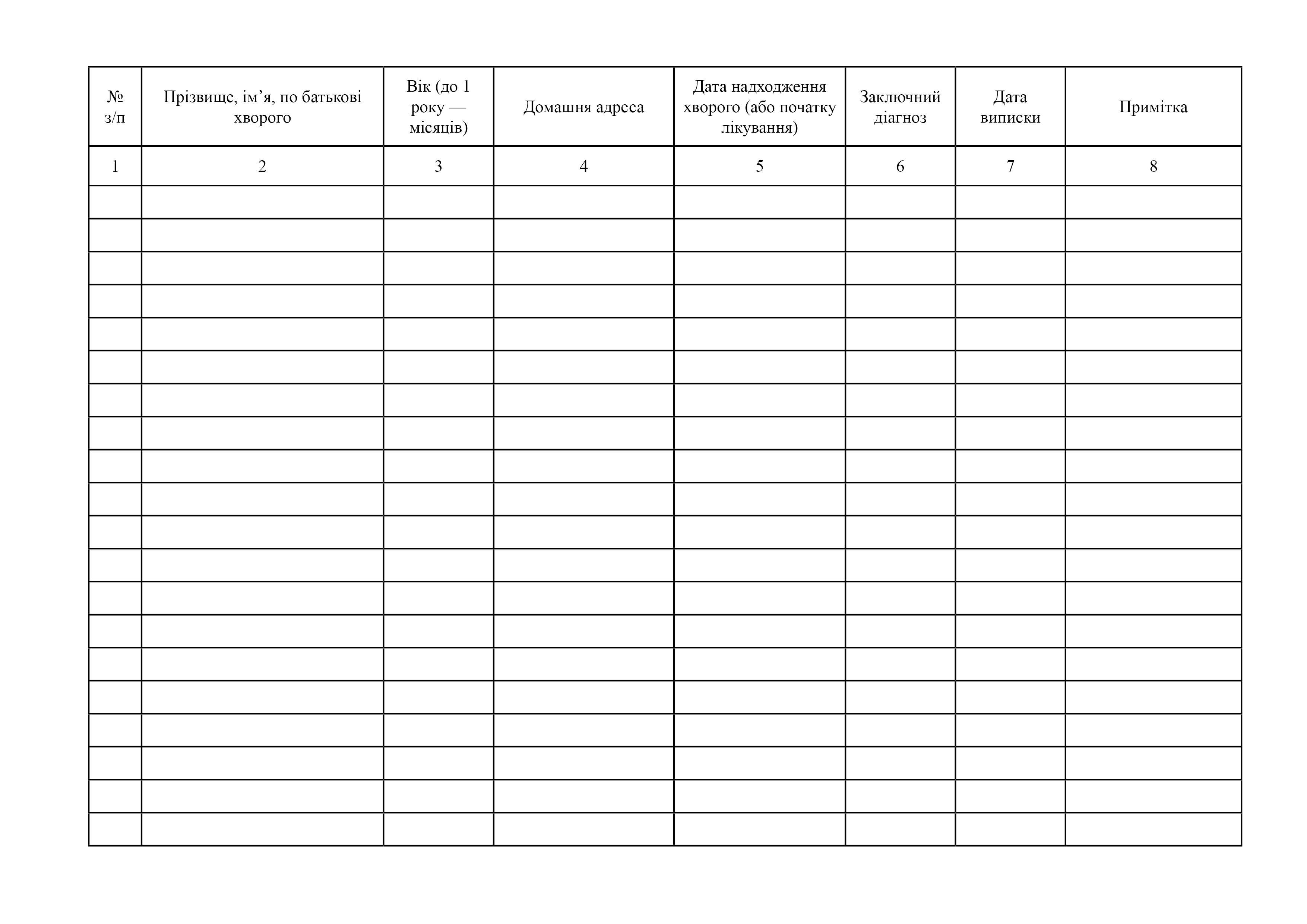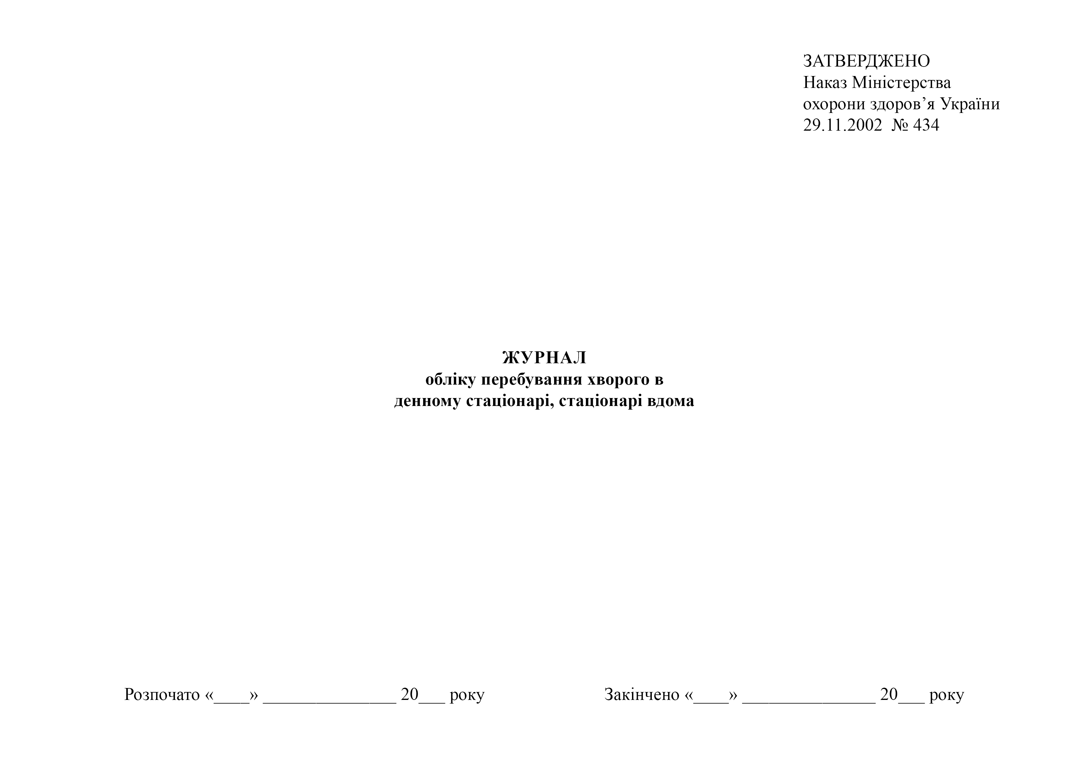 Журнал обліку перебування хворого в денному стаціонарі, стаціонарі вдома.