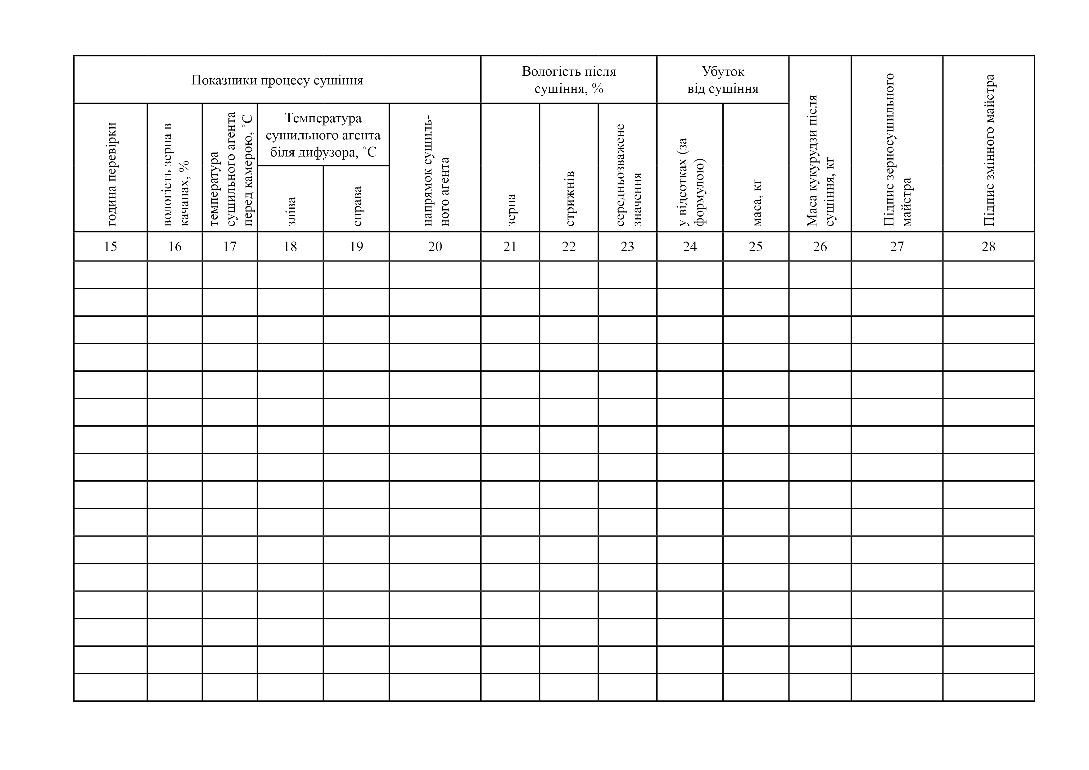 Журнал зерно сушильного цеху сушіння кукурудзи в качанах.
