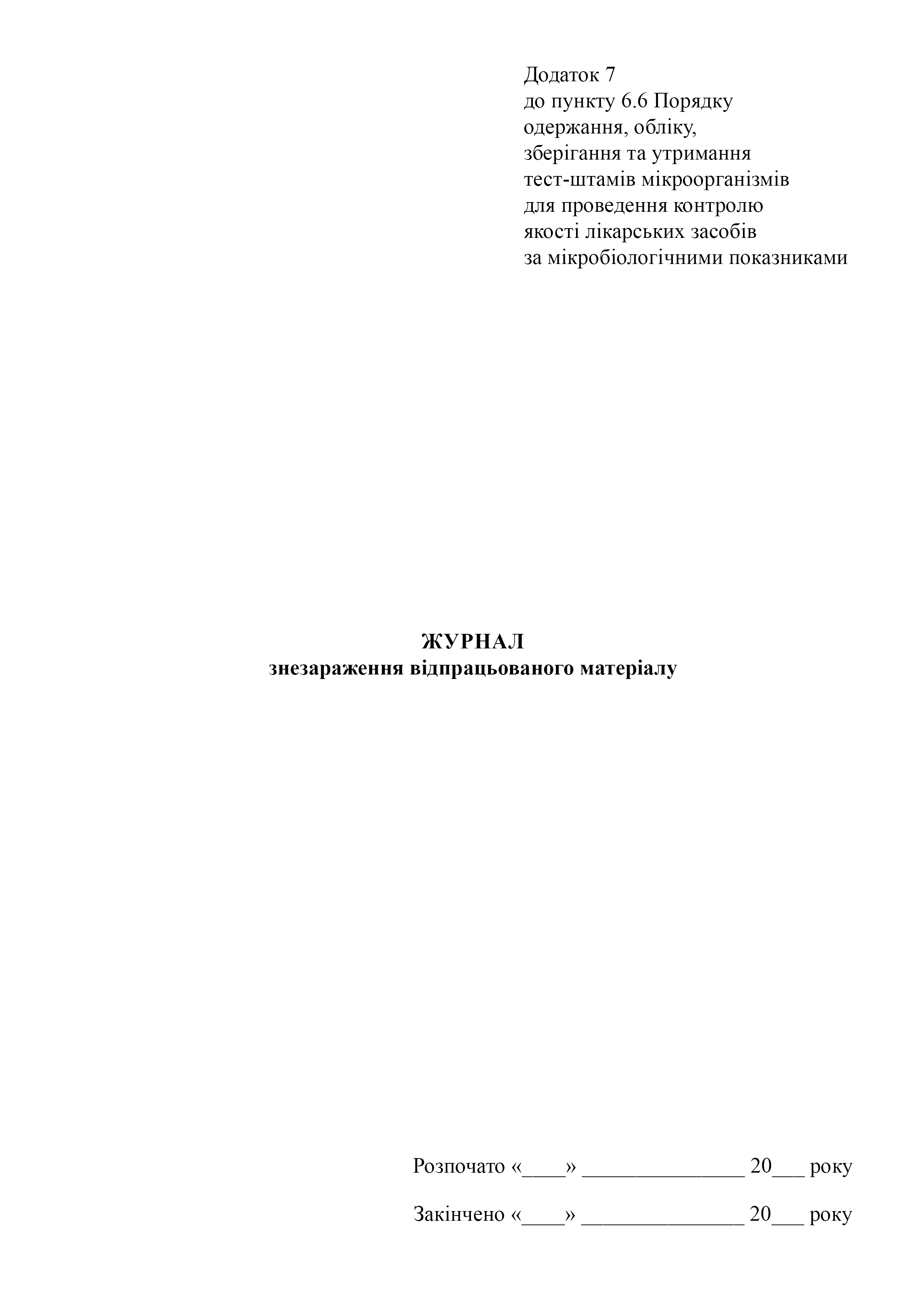 Додаток 7 до пункту 6.6 Порядку одержання, обліку, зберігання та утримання тест-штамів мікроорганізмів для проведення контролю якості лікарських засобів за мікробіологічними показниками ..