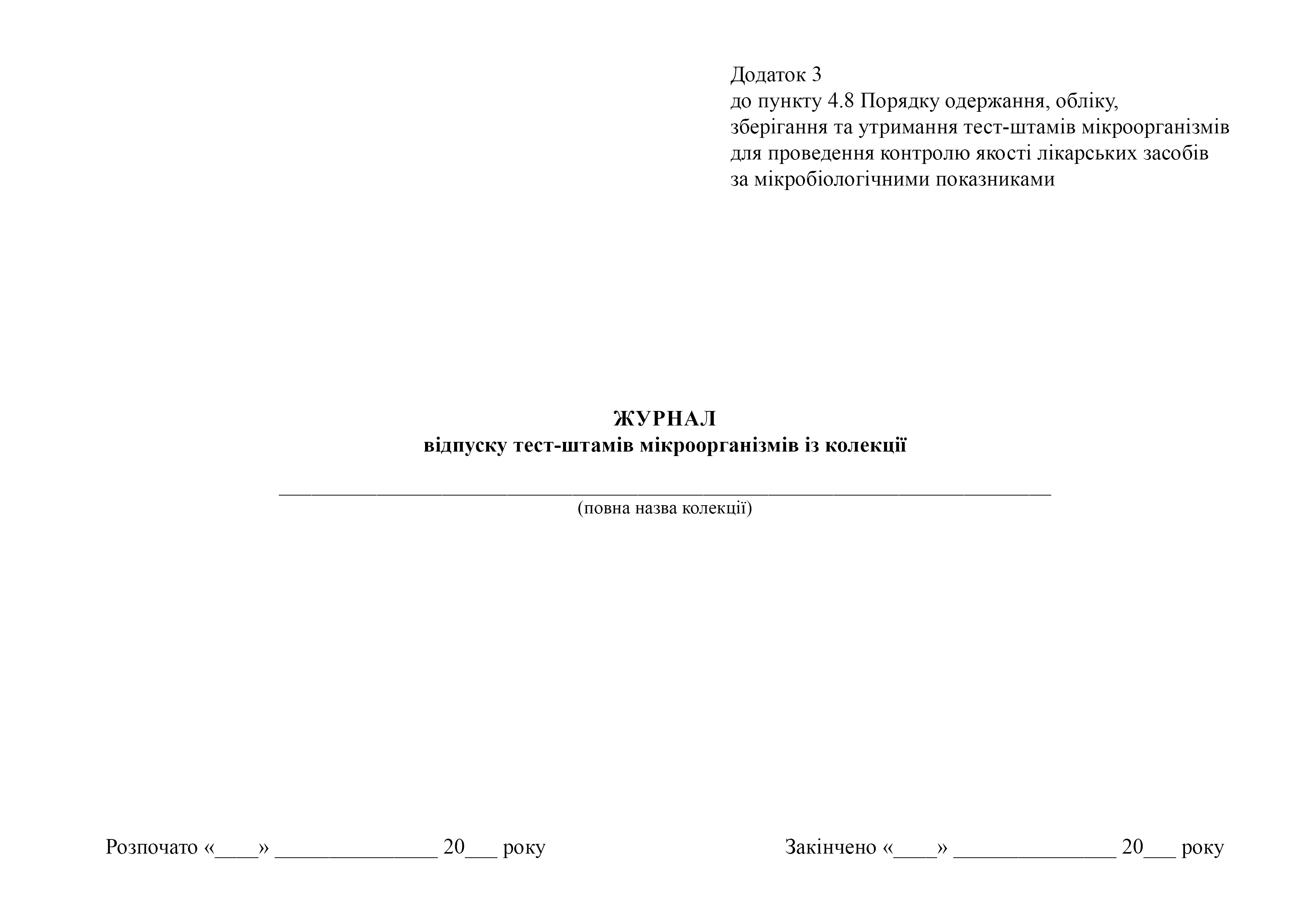 Додаток 3 до пункту 4.8 Порядку одержання, обліку, зберігання та утримання тест-штамів мікроорганізмів для проведення контролю якості лікарських засобів за мікробіологічними показниками.