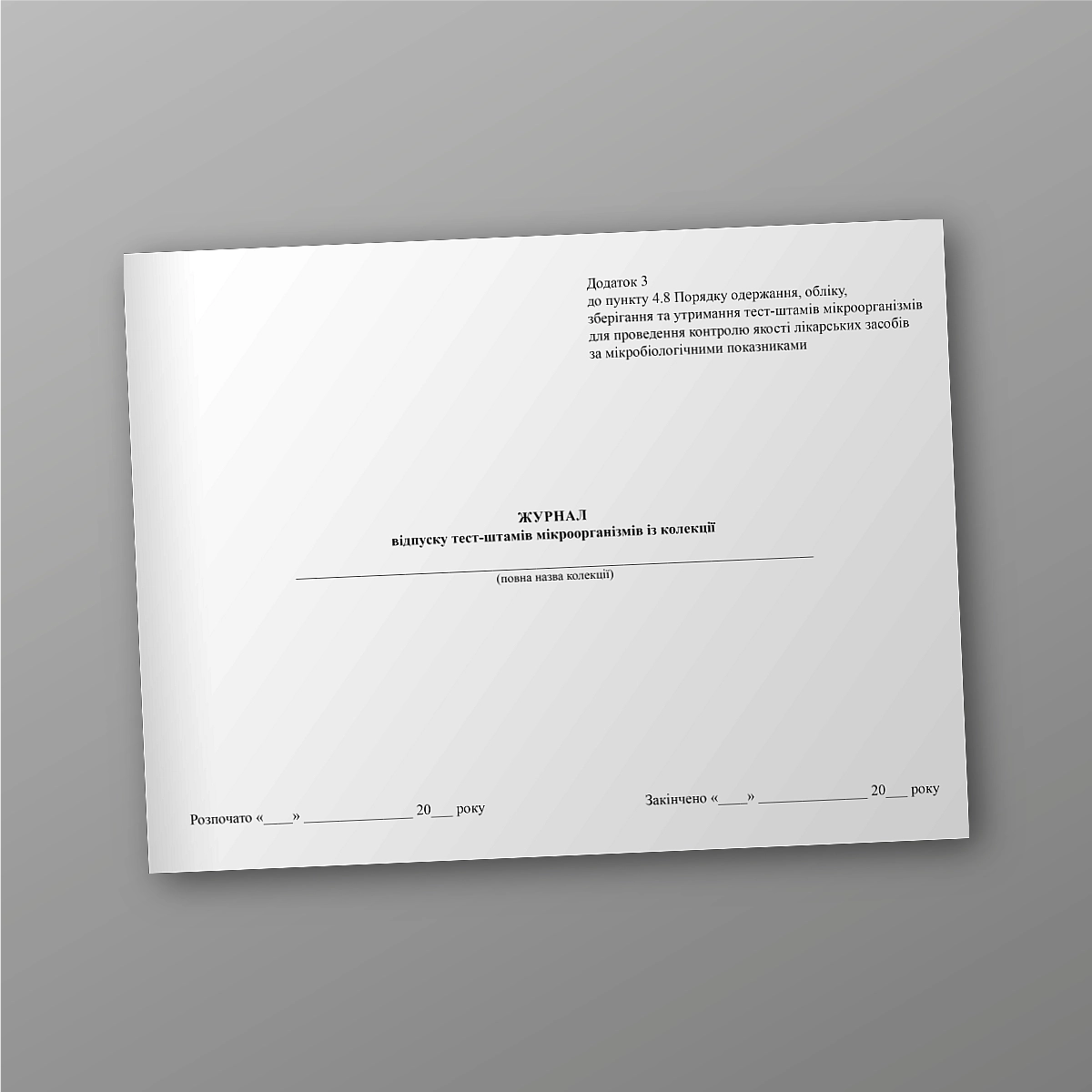 Журнал відпуску тест-штамів мікроорганізмів із колекції.