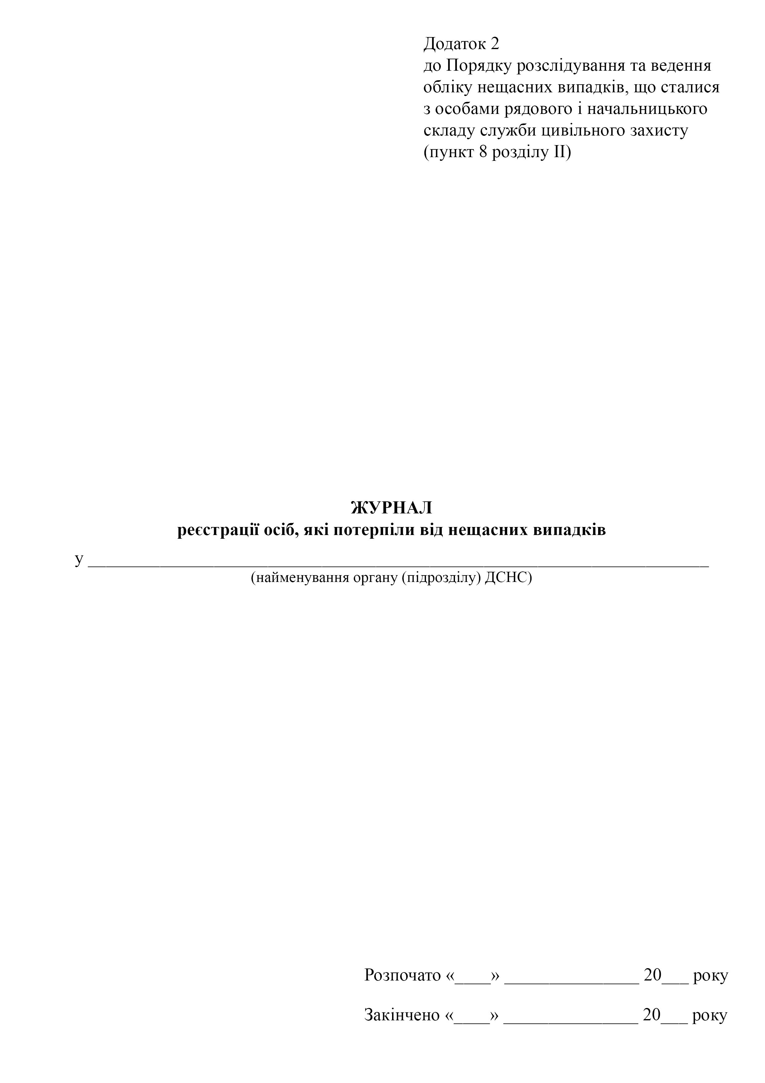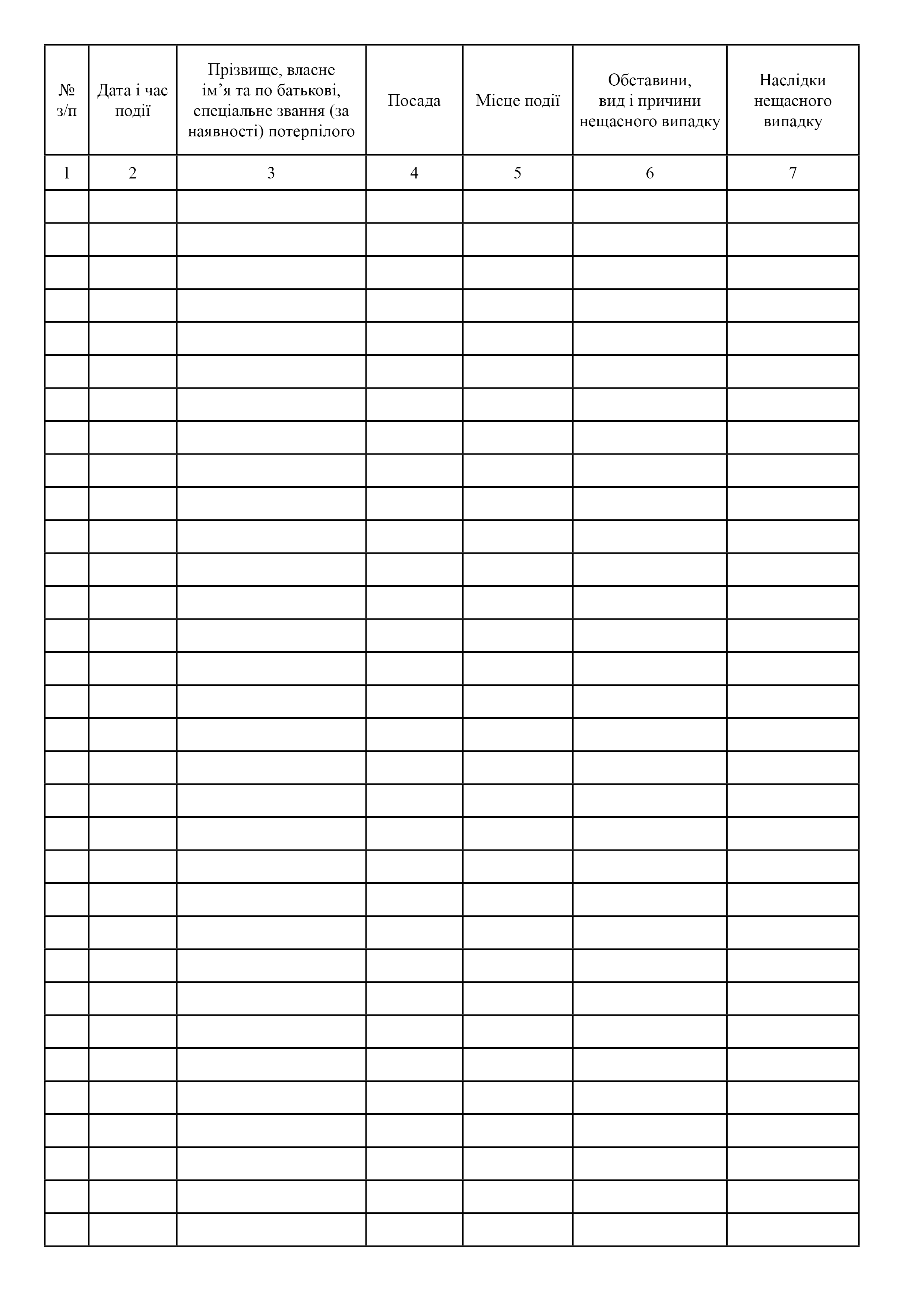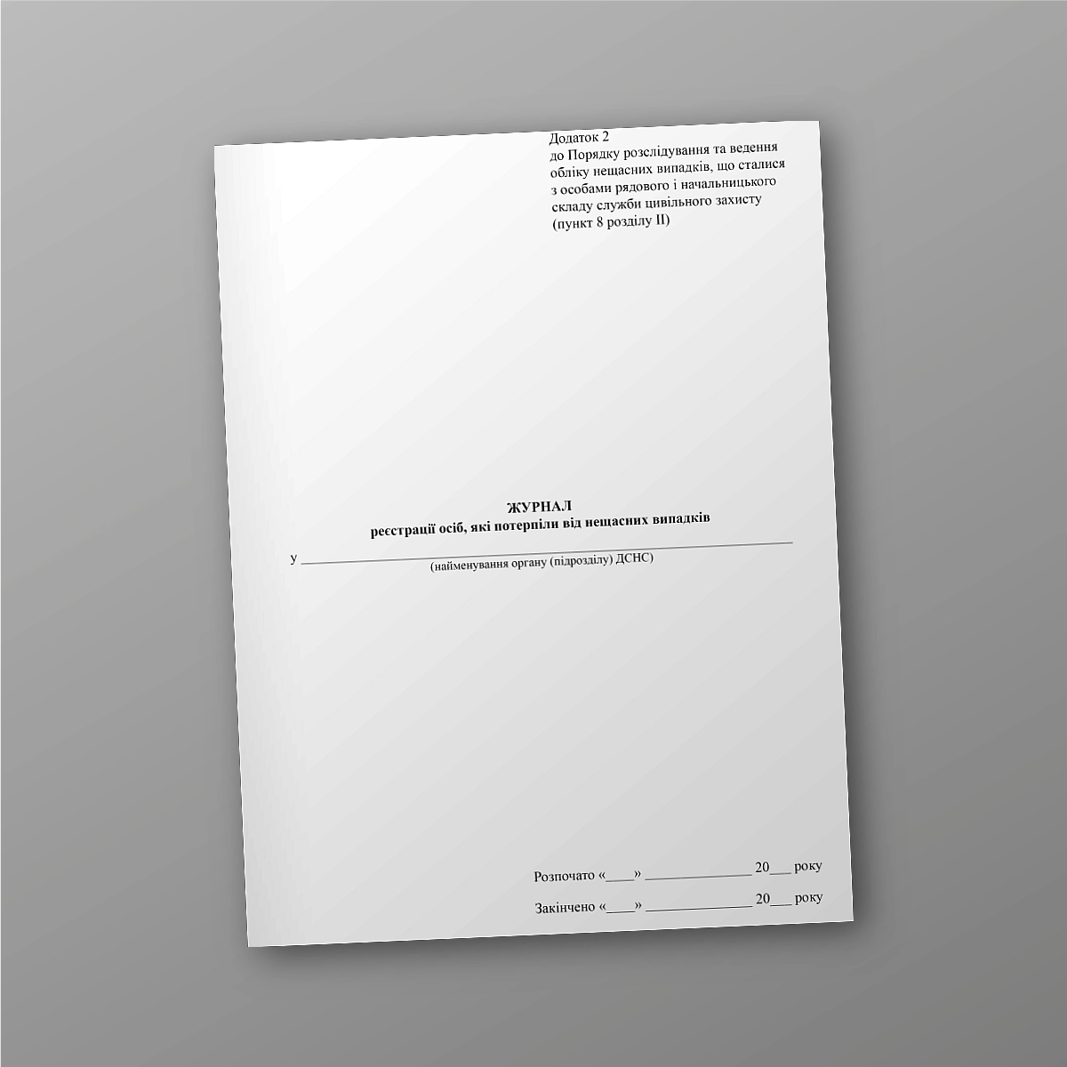 Журнал реєстрації осіб, які потерпіли від нещасних випадків.