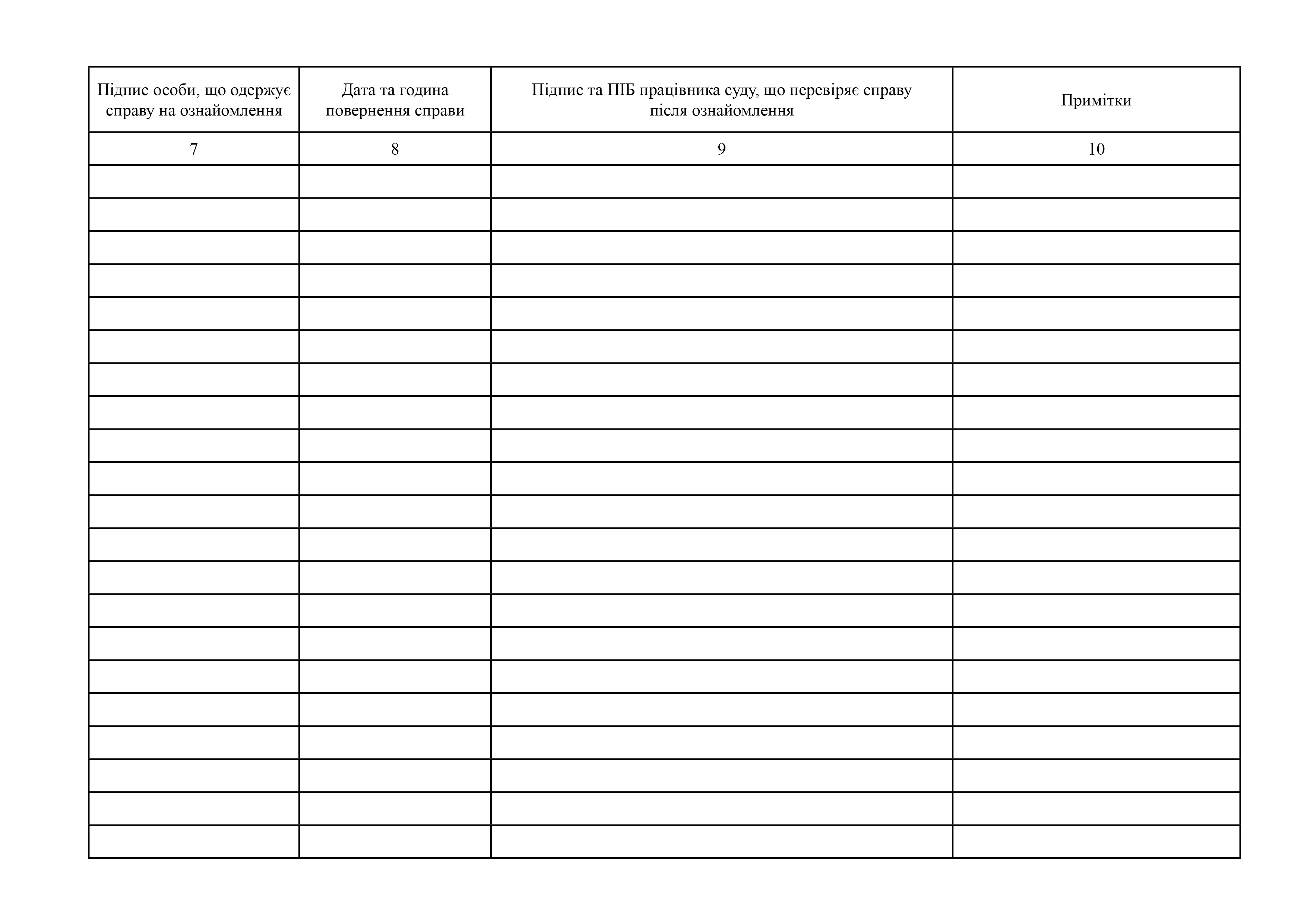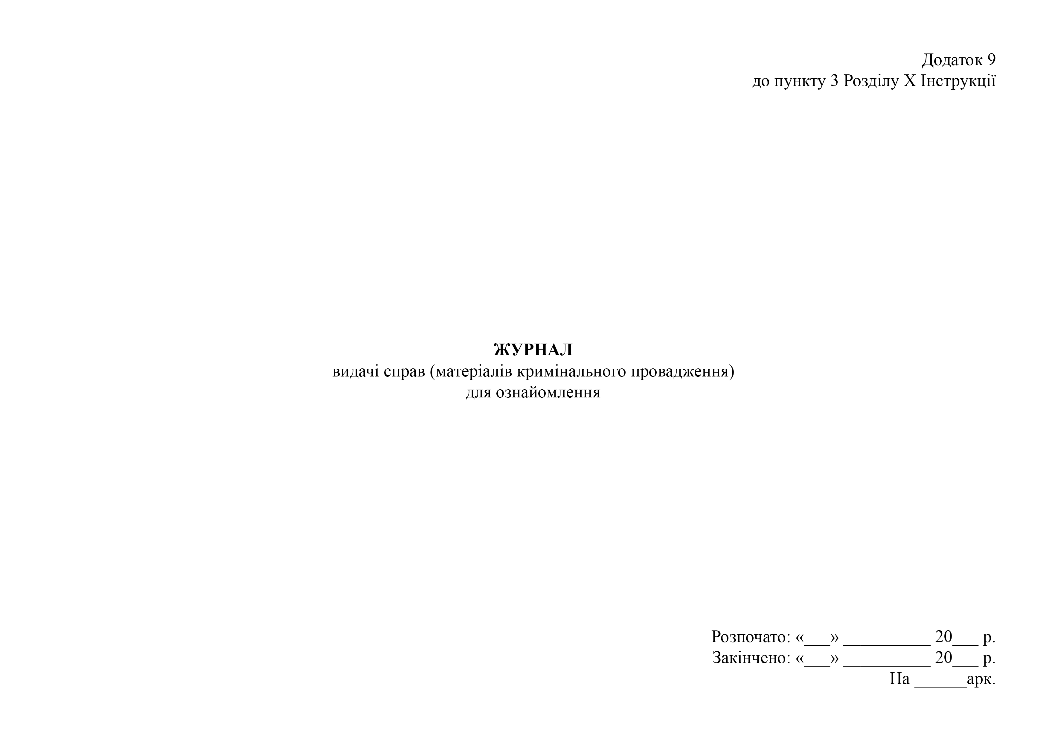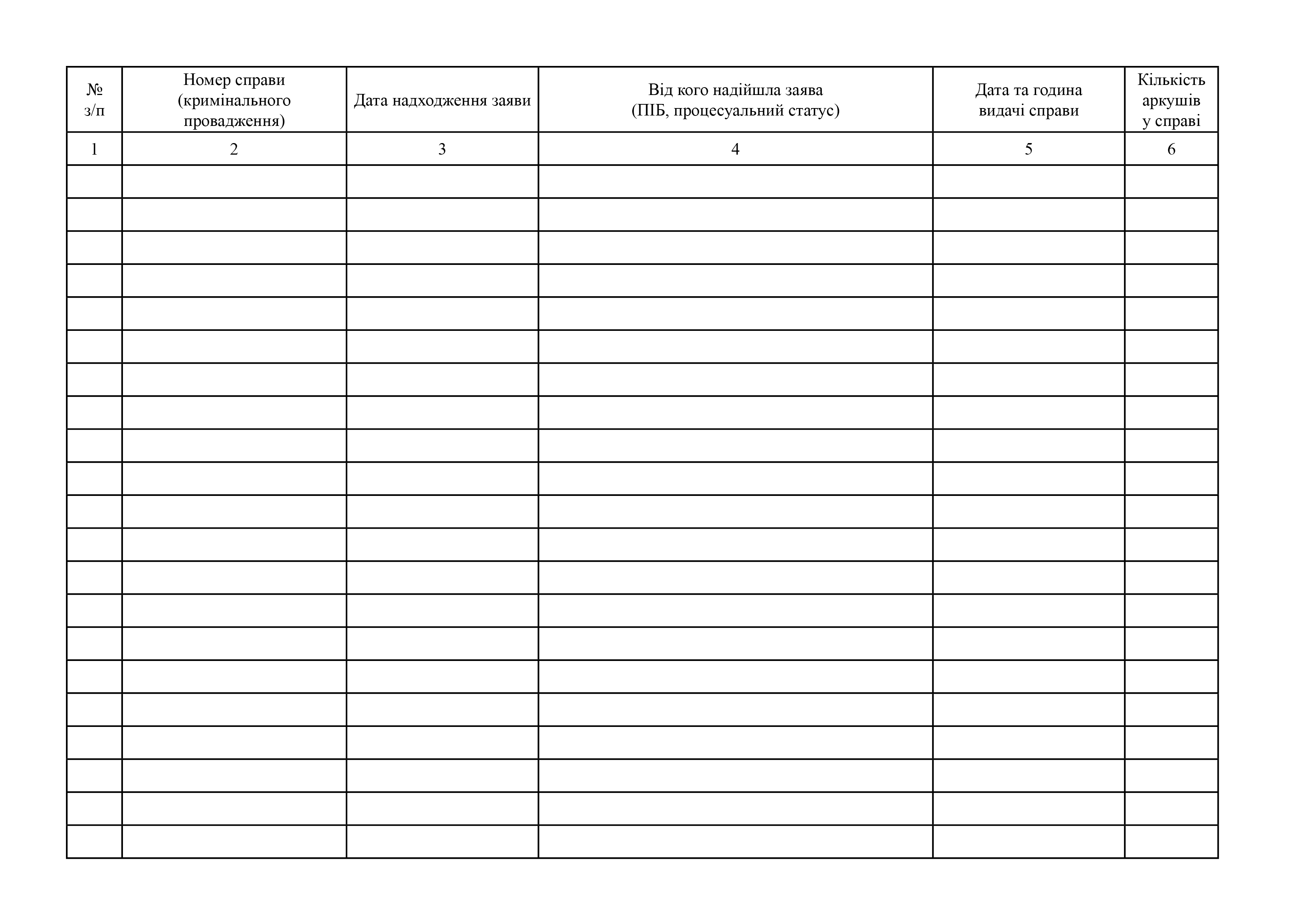 Журнал видачі справ (матеріалів кримінального провадження) для ознайомлення.