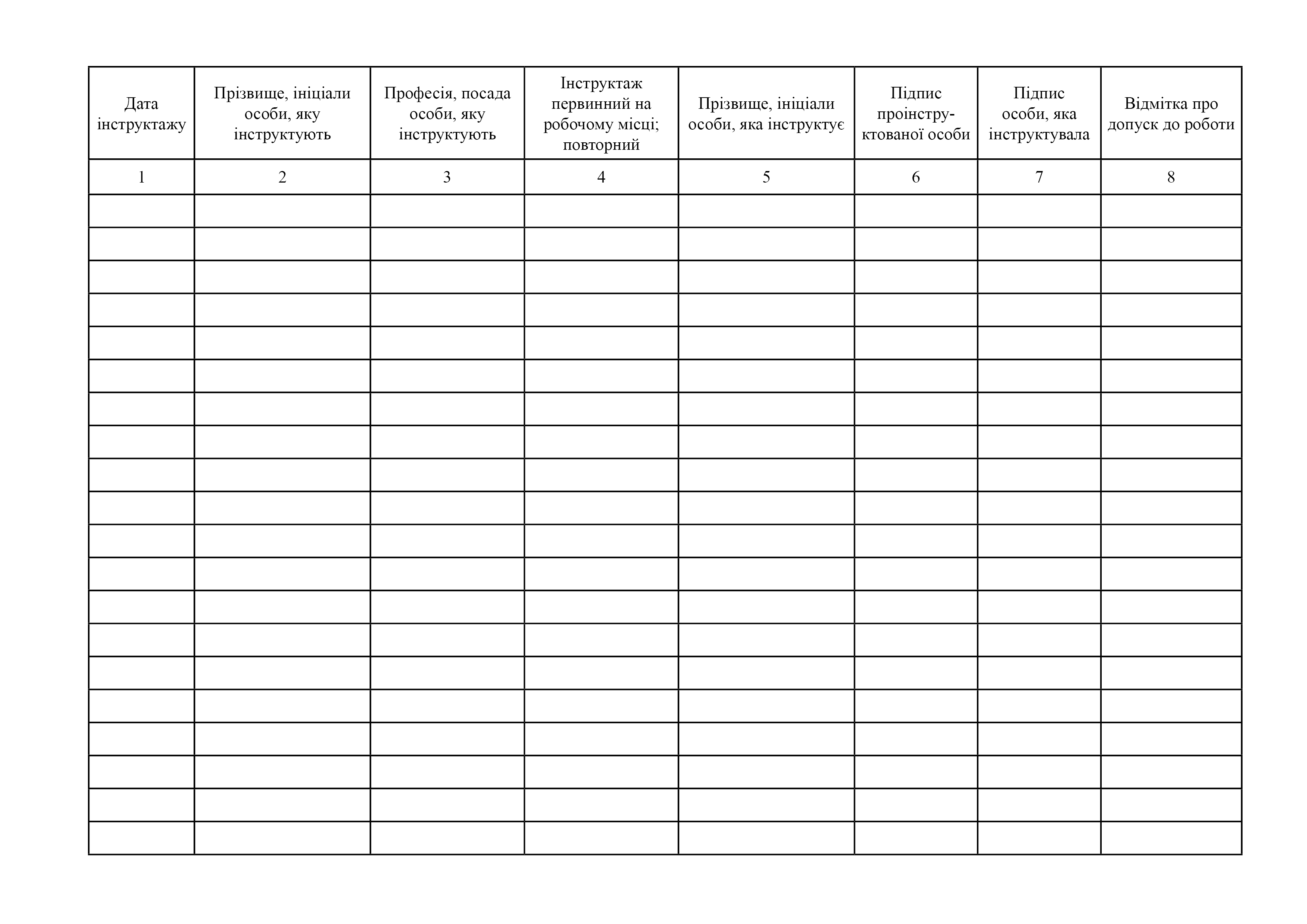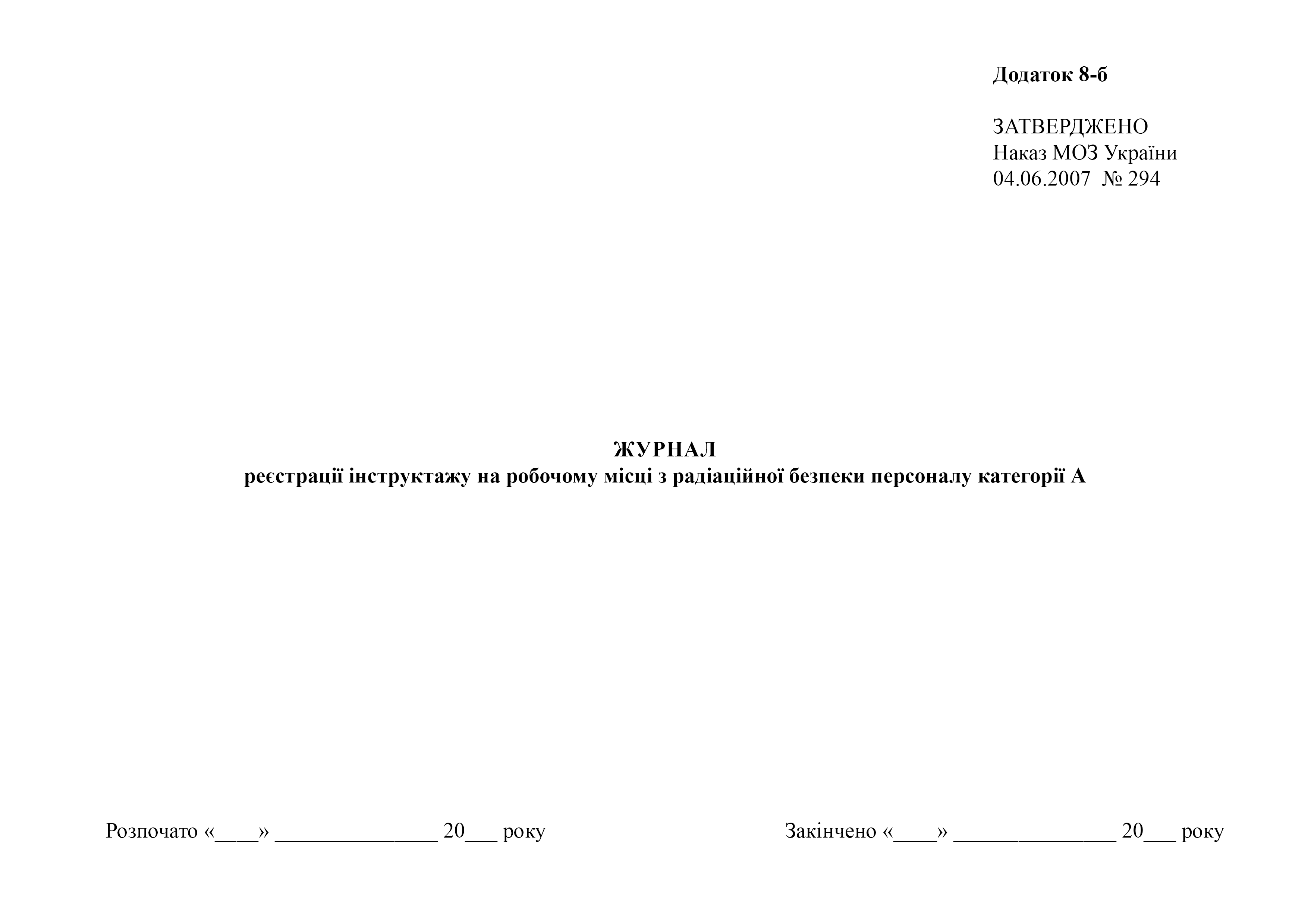 Журнал реєстрації інструктажу на робочому місці з радіаційної безпеки персоналу категорії А.