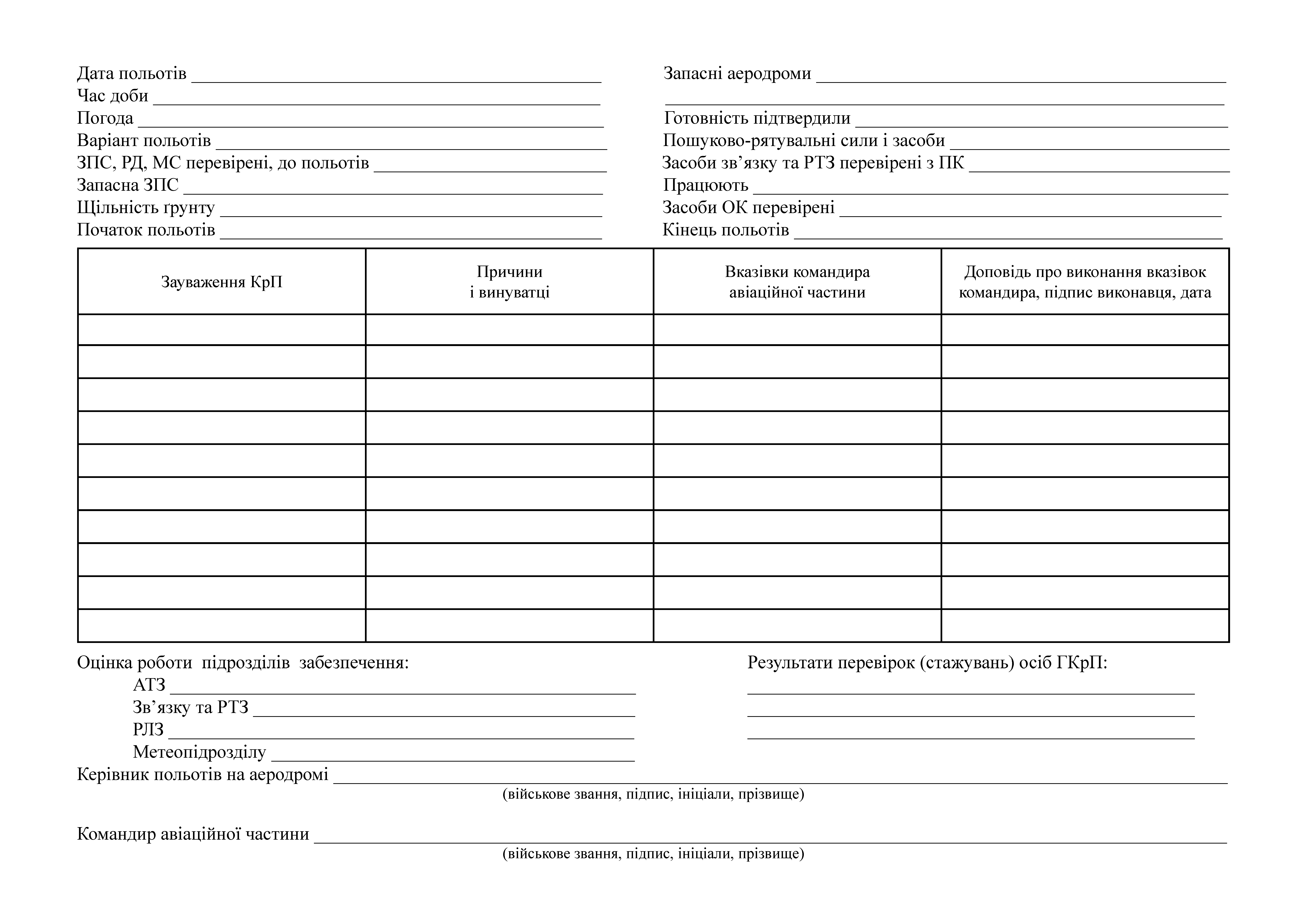 Журнал керівника польотів на аеродромі.