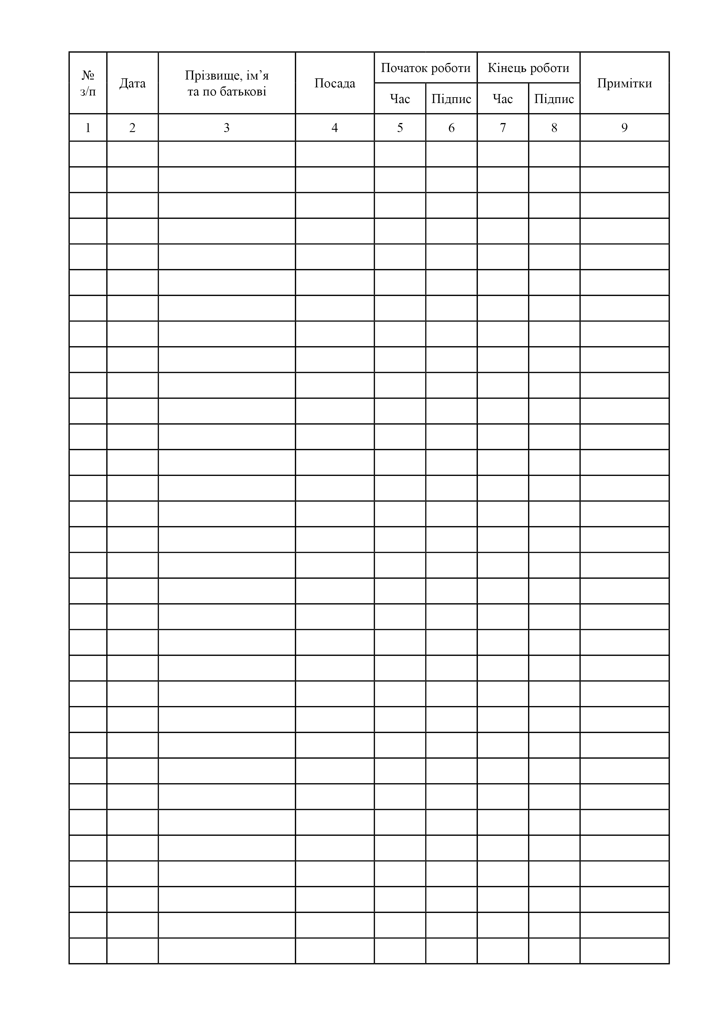Книга обліку робочого часу.