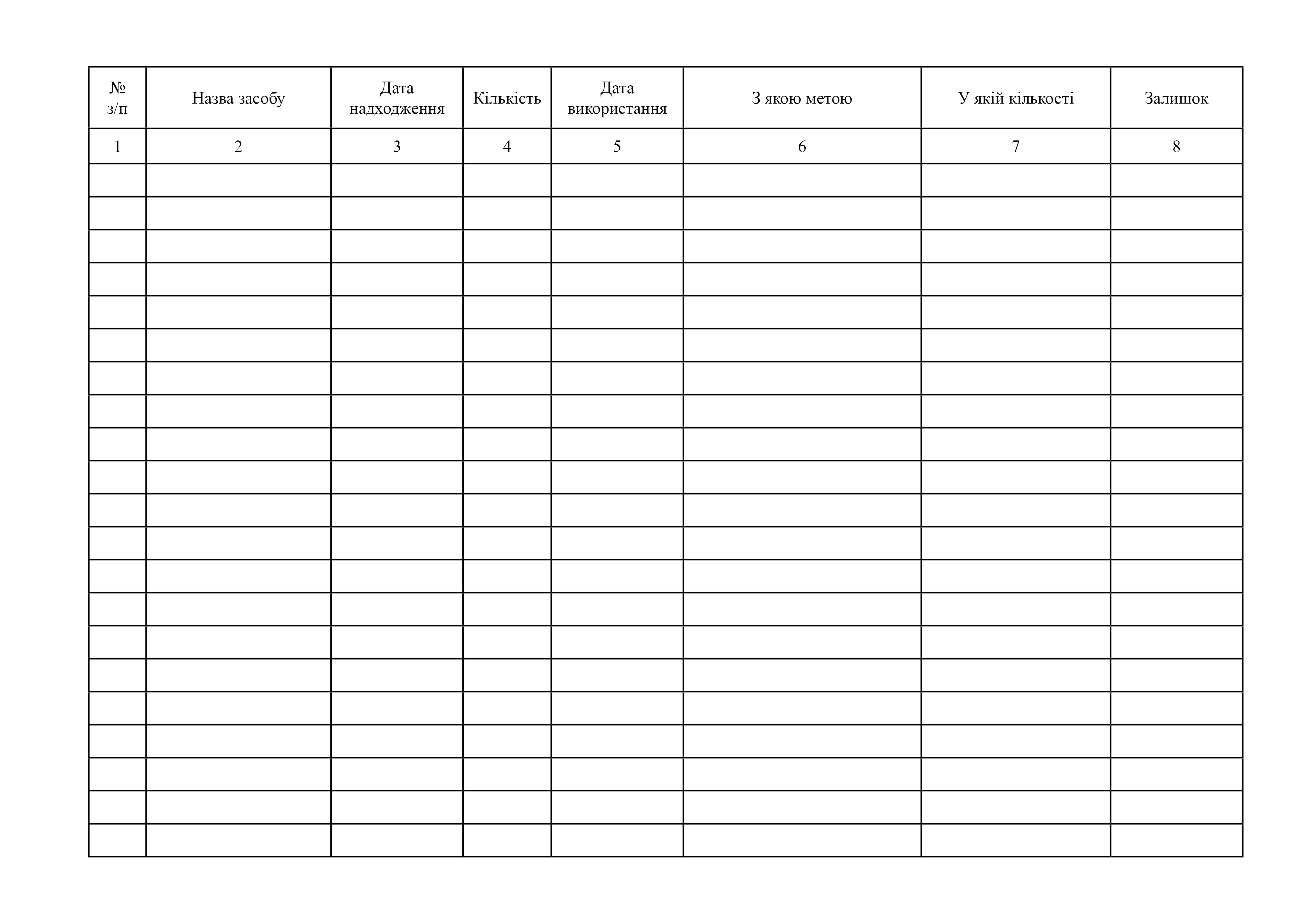 Журнал використання мийних та дезінфекційних засобів.