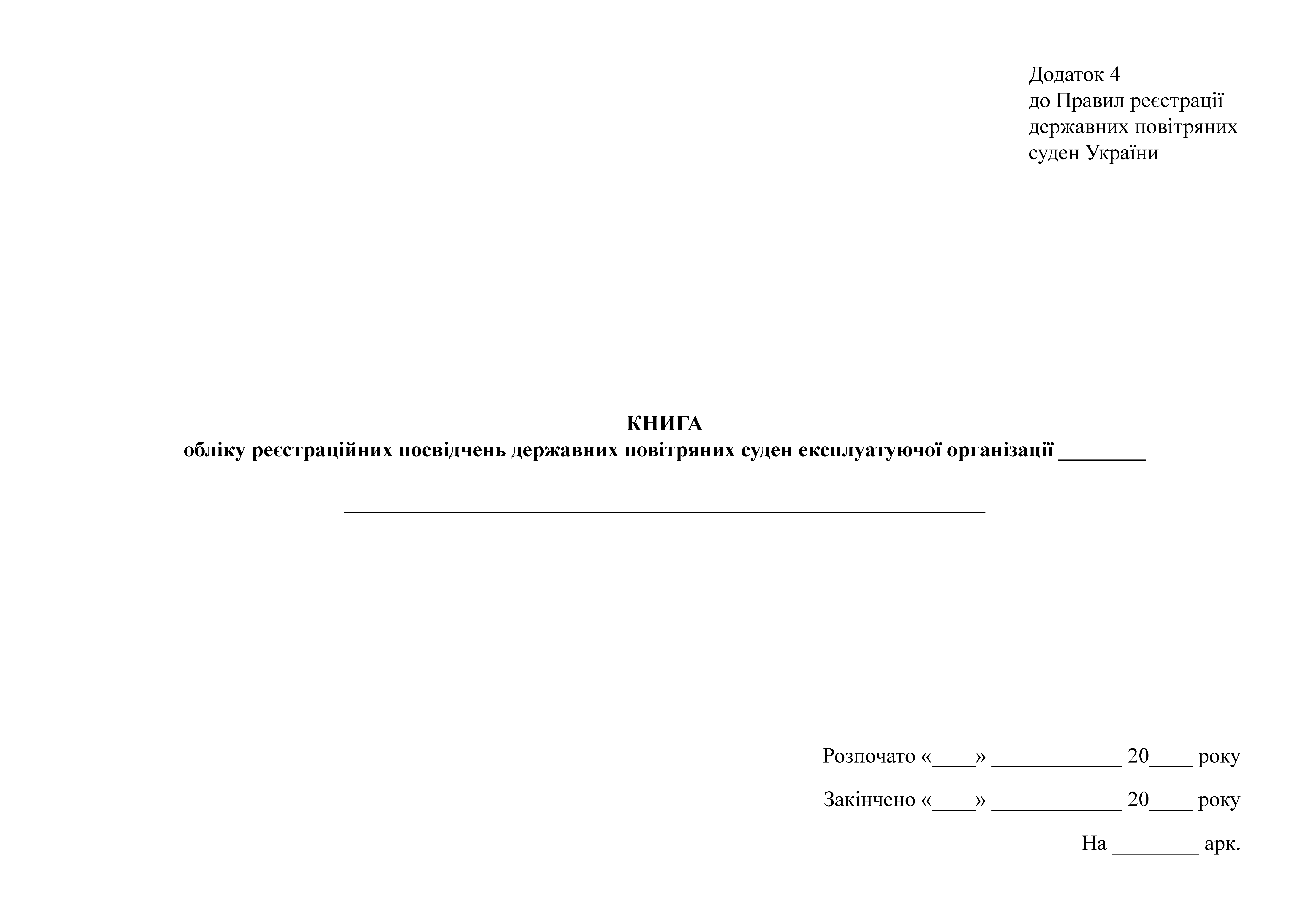 Книга обліку реєстраційних посвідчень державних повітряних суден експлуатуючої організації