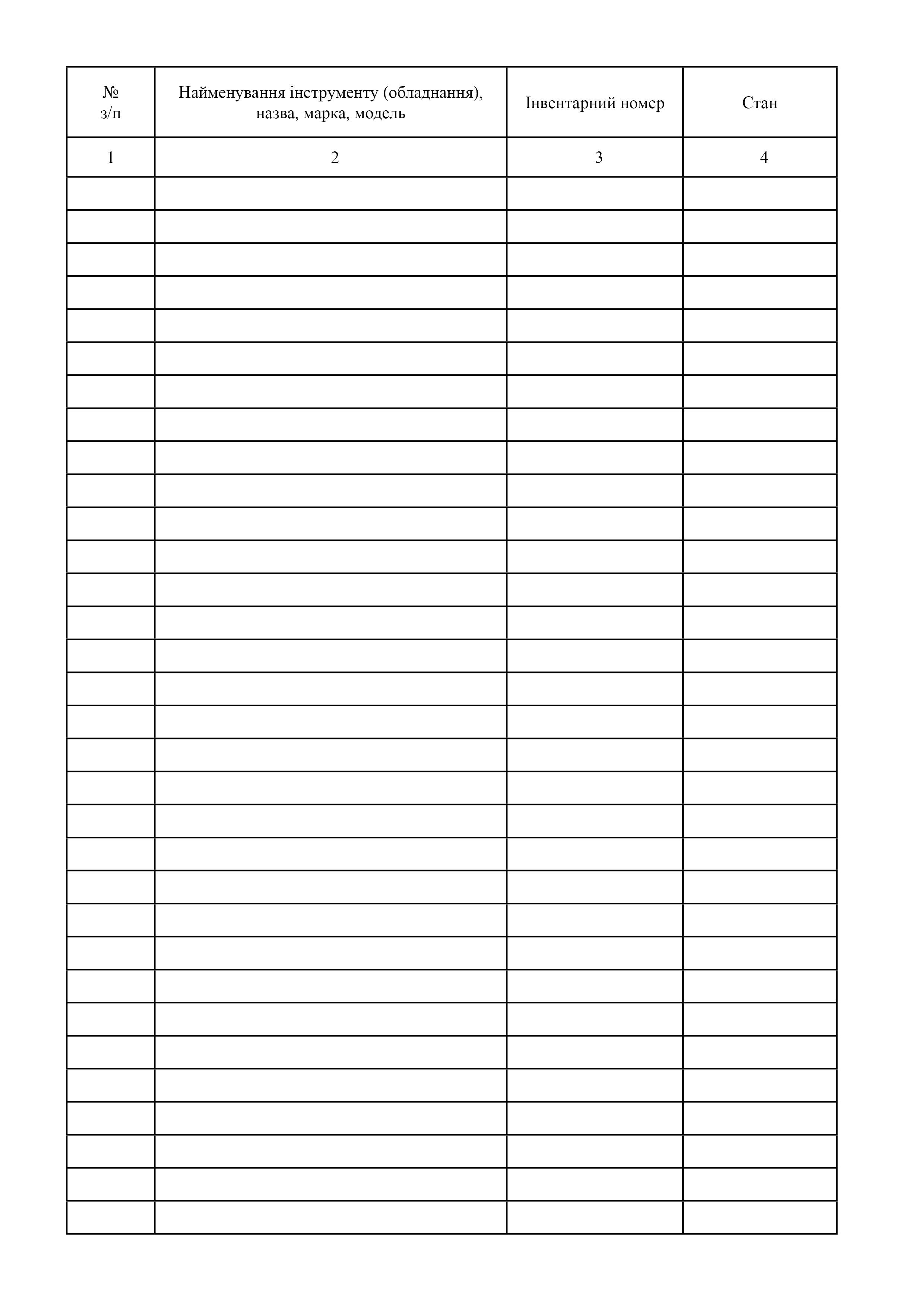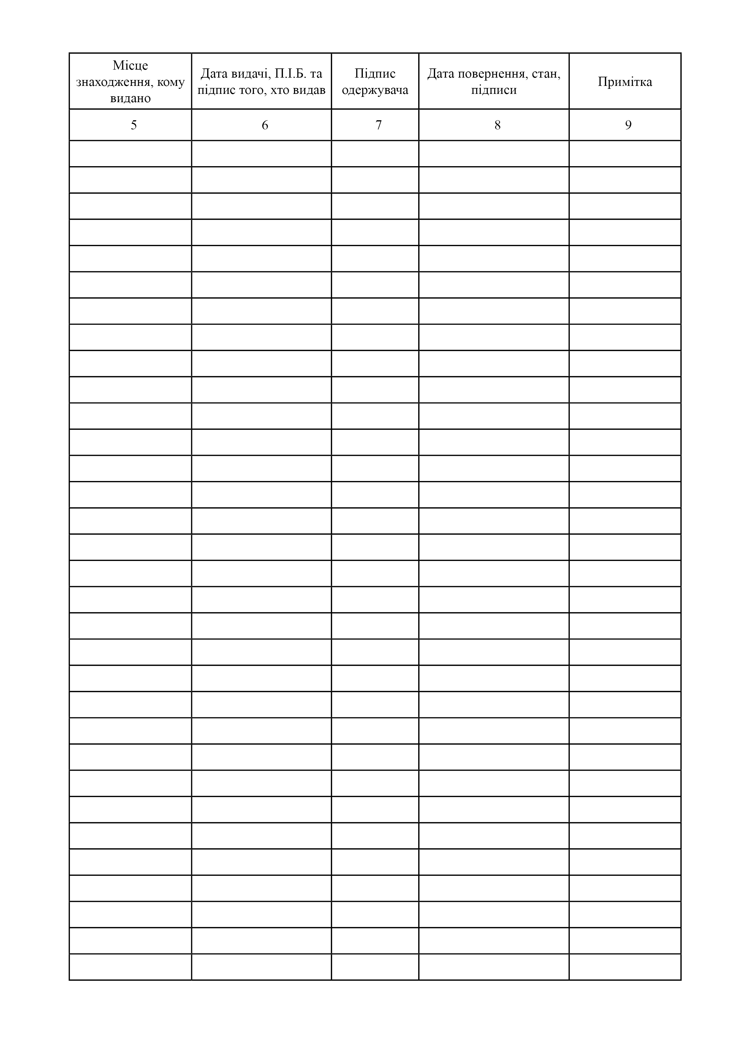 Журнал обліку видачі та повернення інструменту (обладнання).