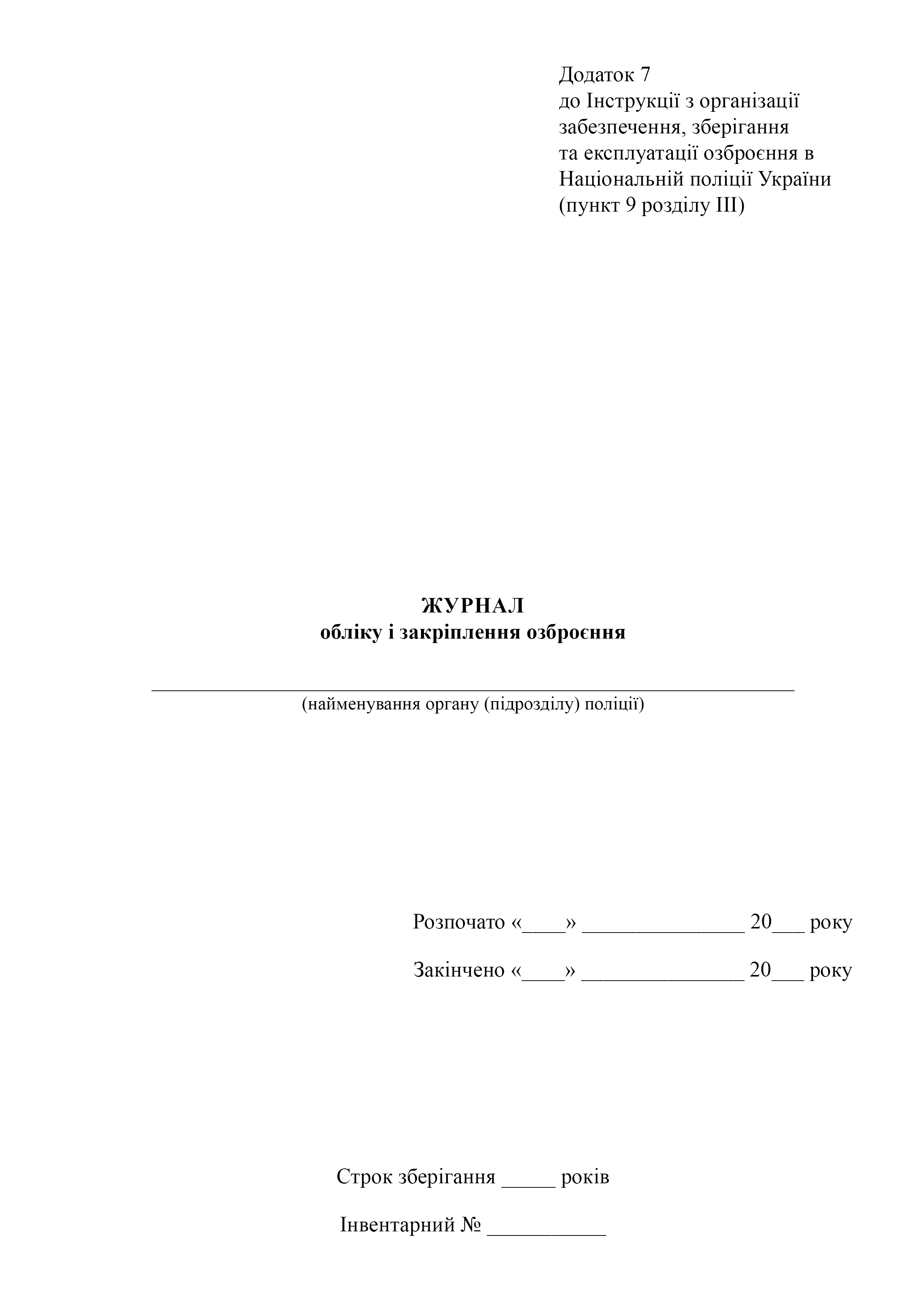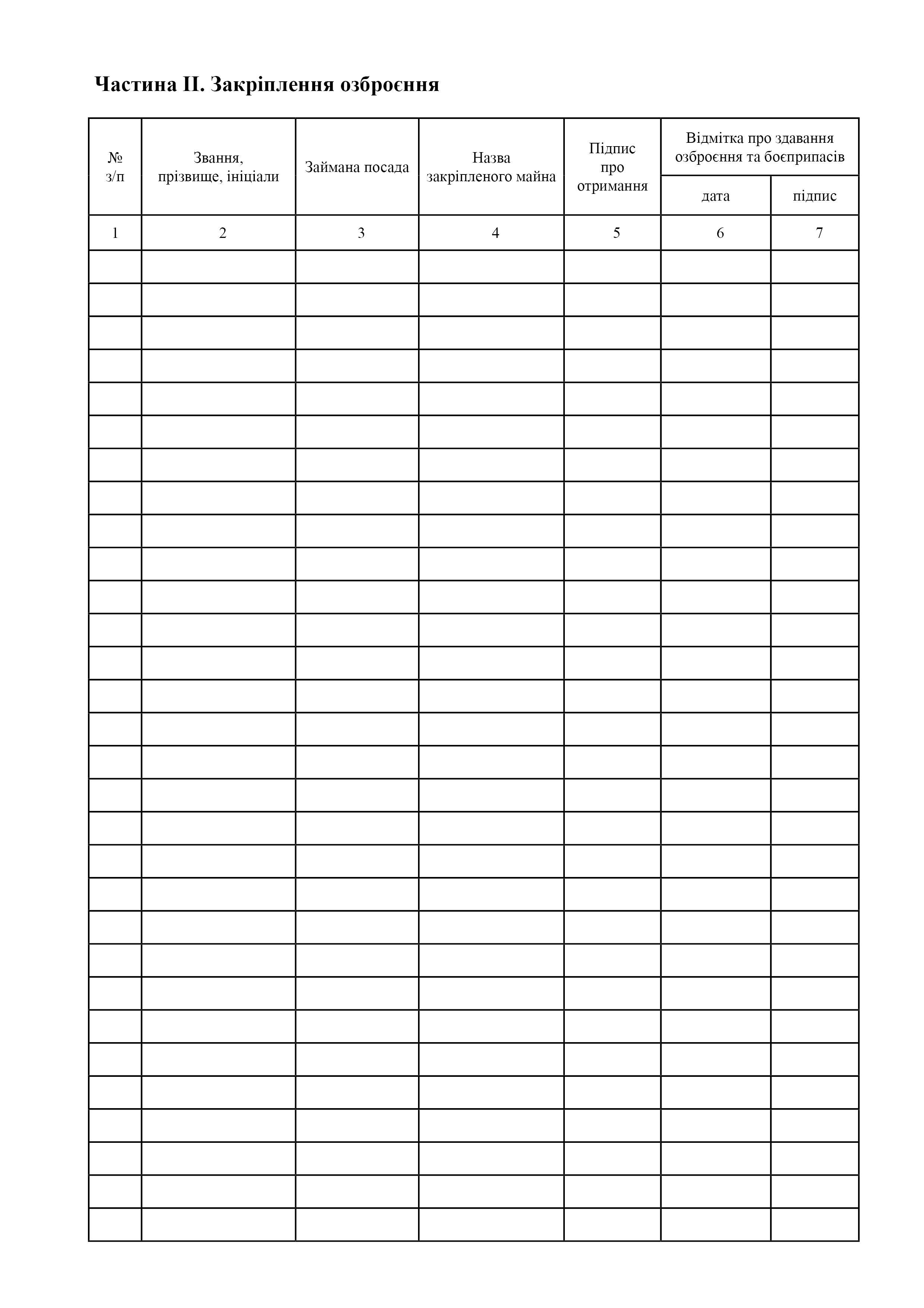 Книга обліку і закріплення озброєння.