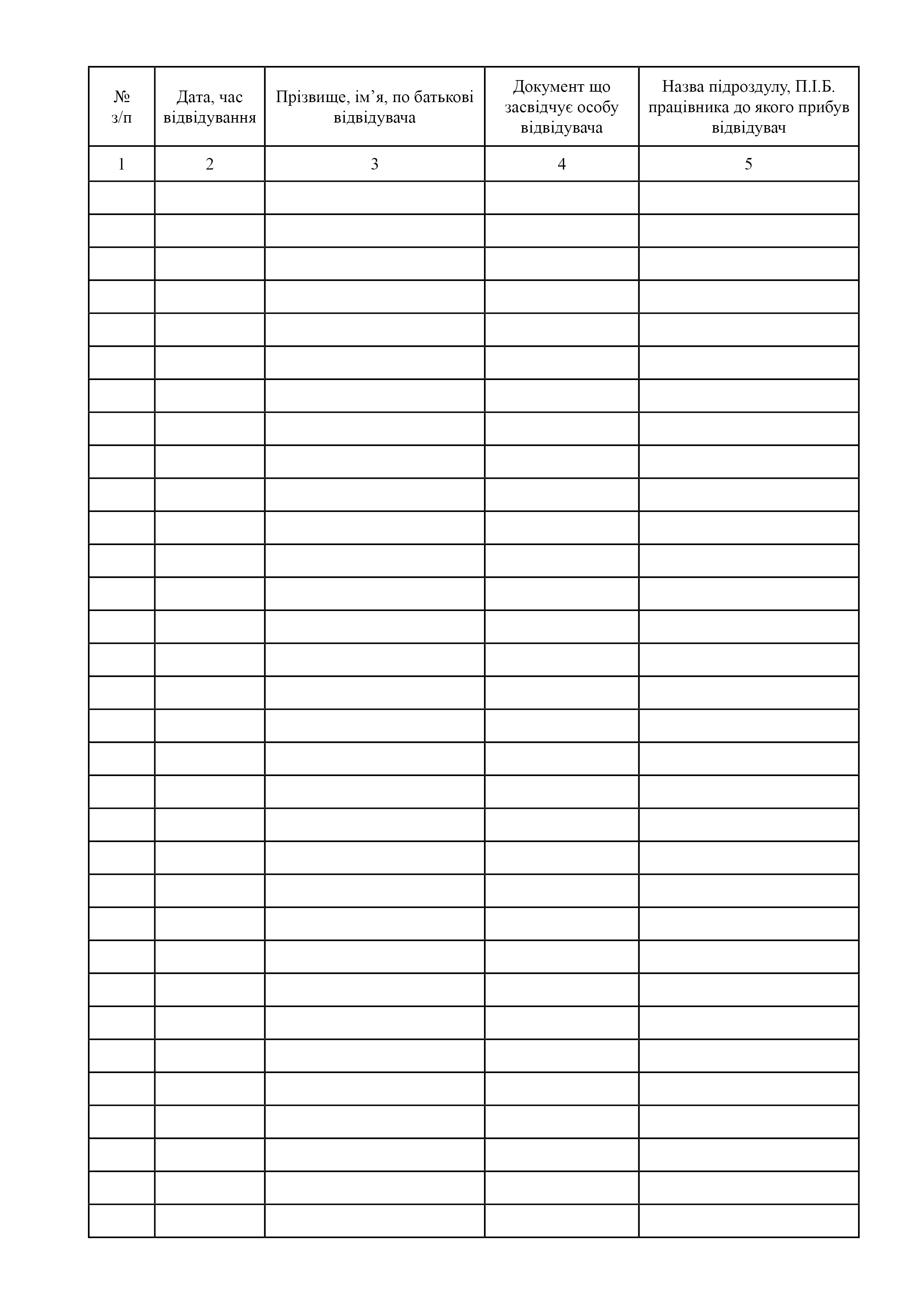 Журнал реєстрації відвідувачів.