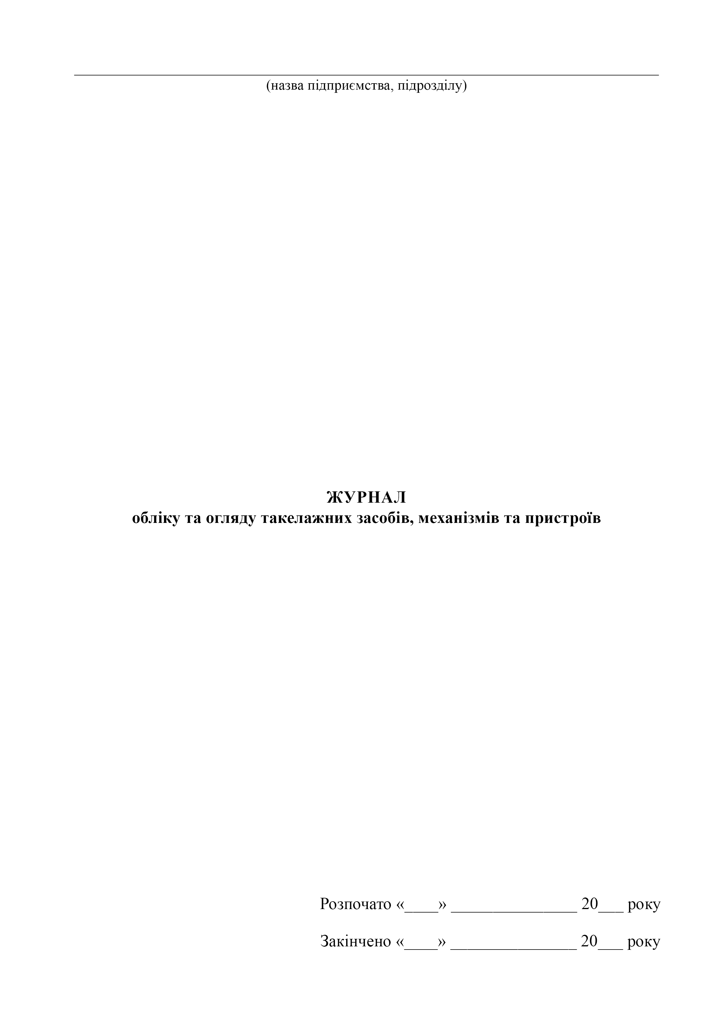Журнал обліку та огляду такелажних засобів, механізмів та пристроїв.