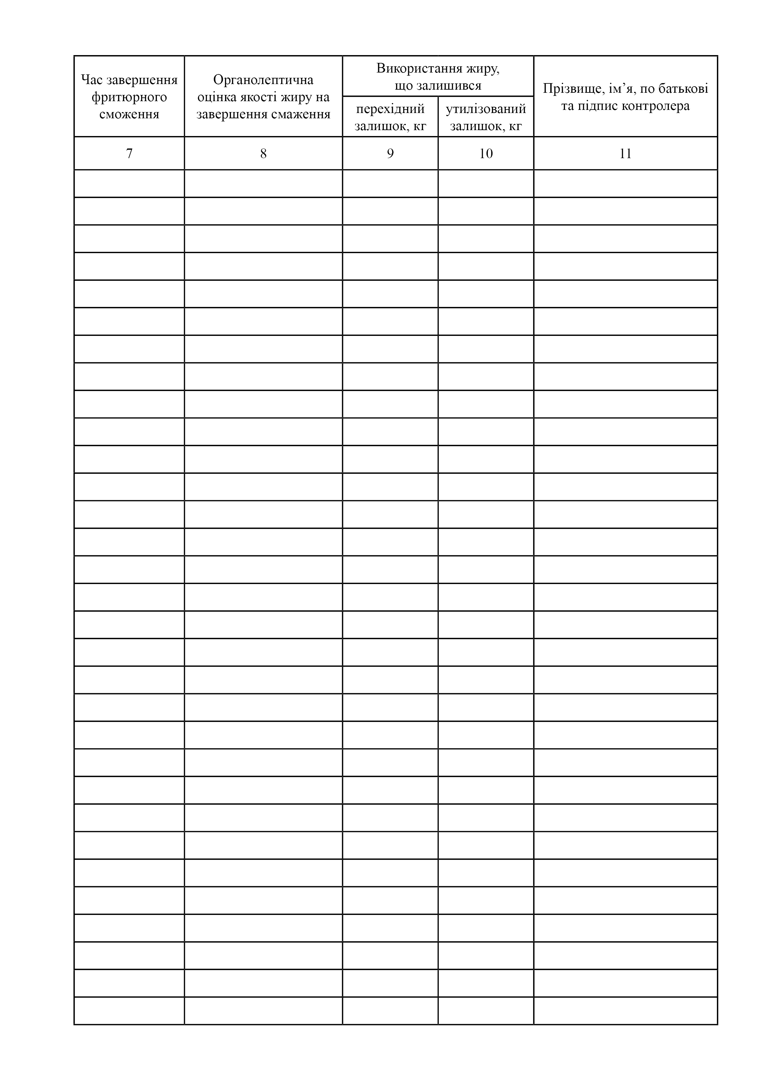 Журнал обліку використання фритюрних жирів.