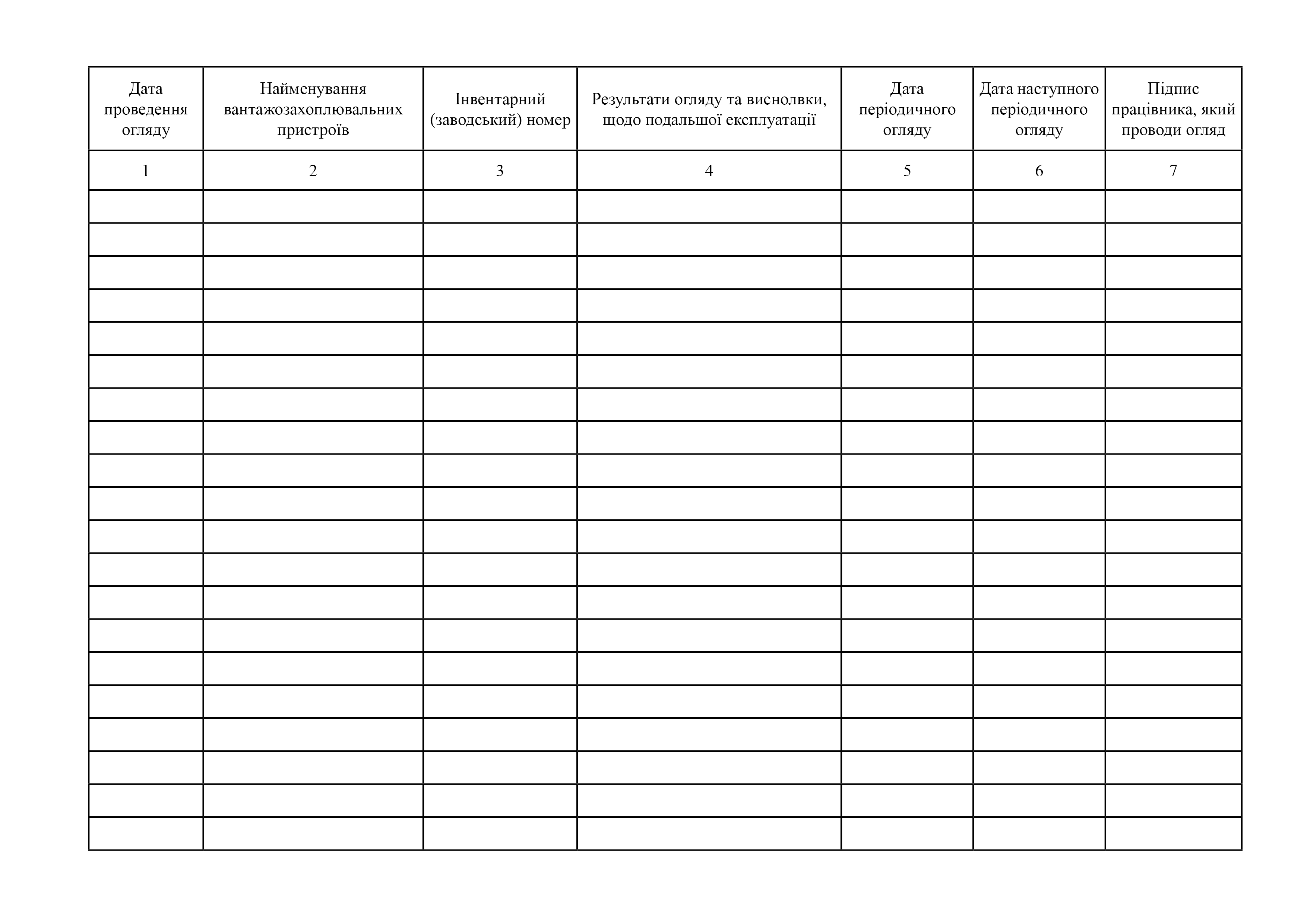 Журнал періодичного огляду змінних вантажозахоплювальних пристроїв, тарі.