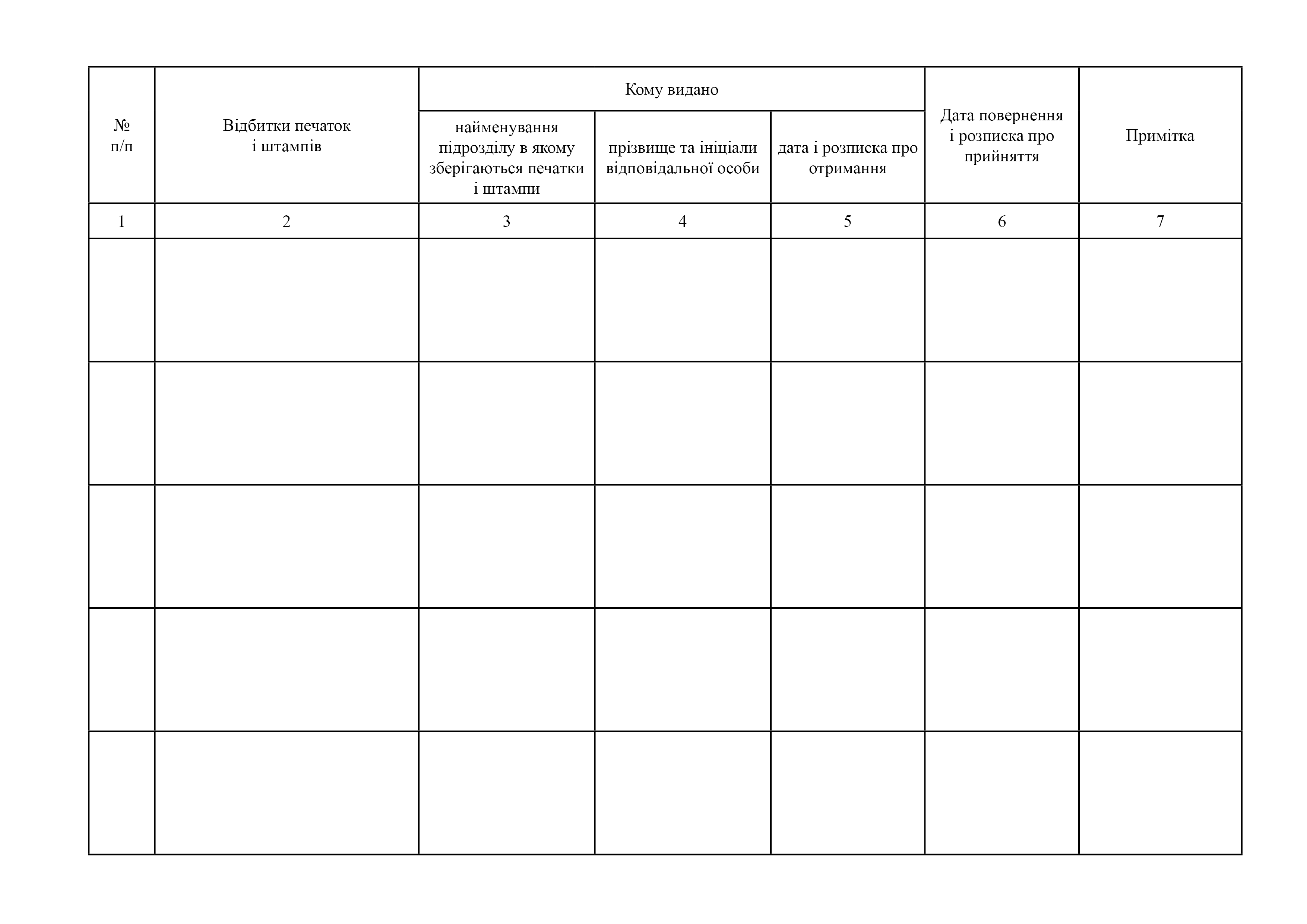 Журнал обліку та видачі печаток і штампів.