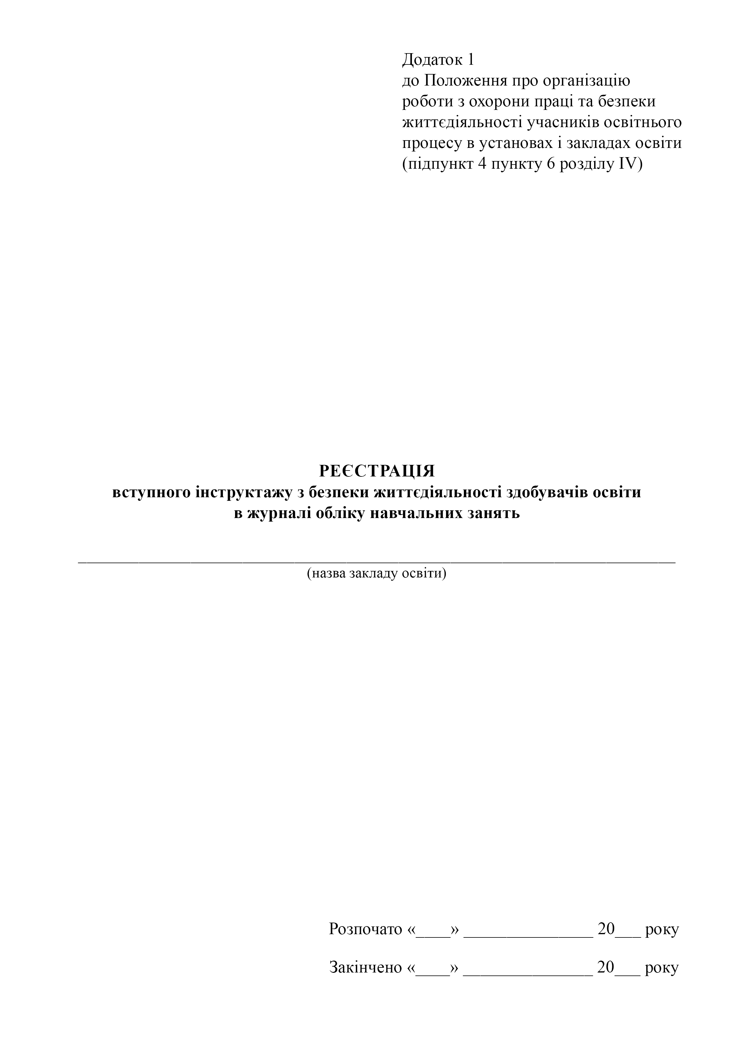 Реєстрація вступного інструктажу з безпеки життєдіяльності здобувачів освіти в журналі обліку навчальних занять.