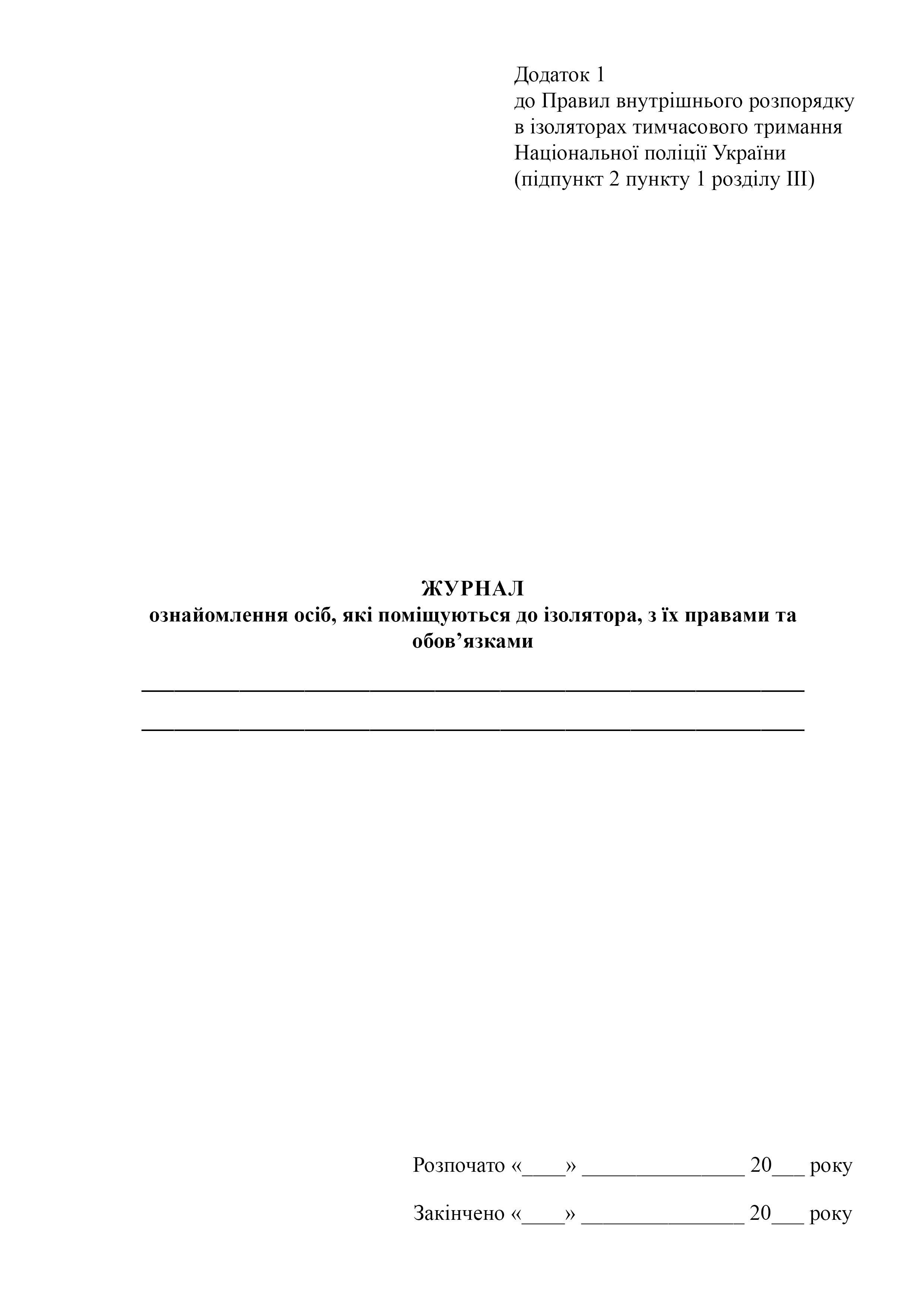 Журнал ознайомлення осіб, яких поміщають в ізолятор, з їхніми правами та обов'язками.