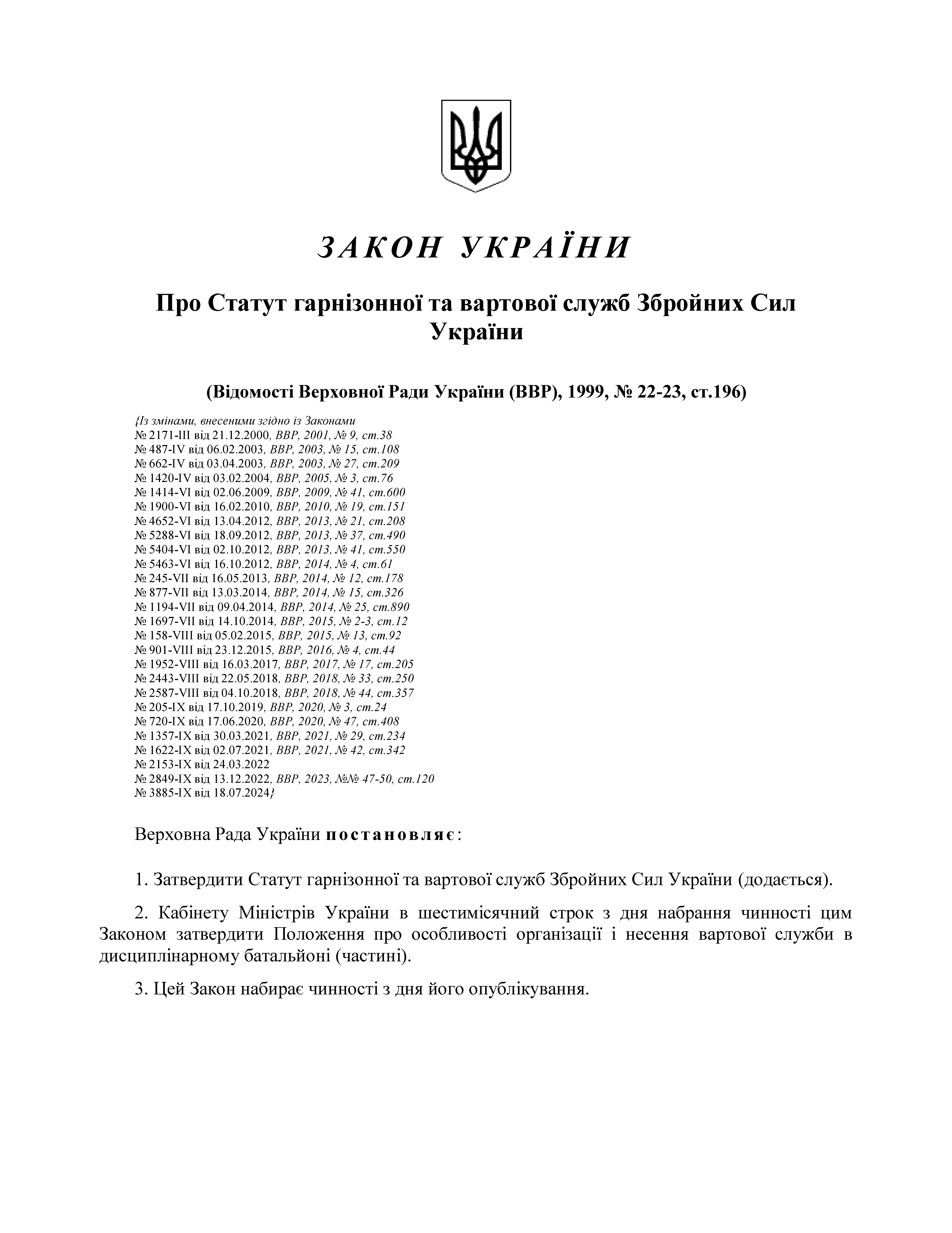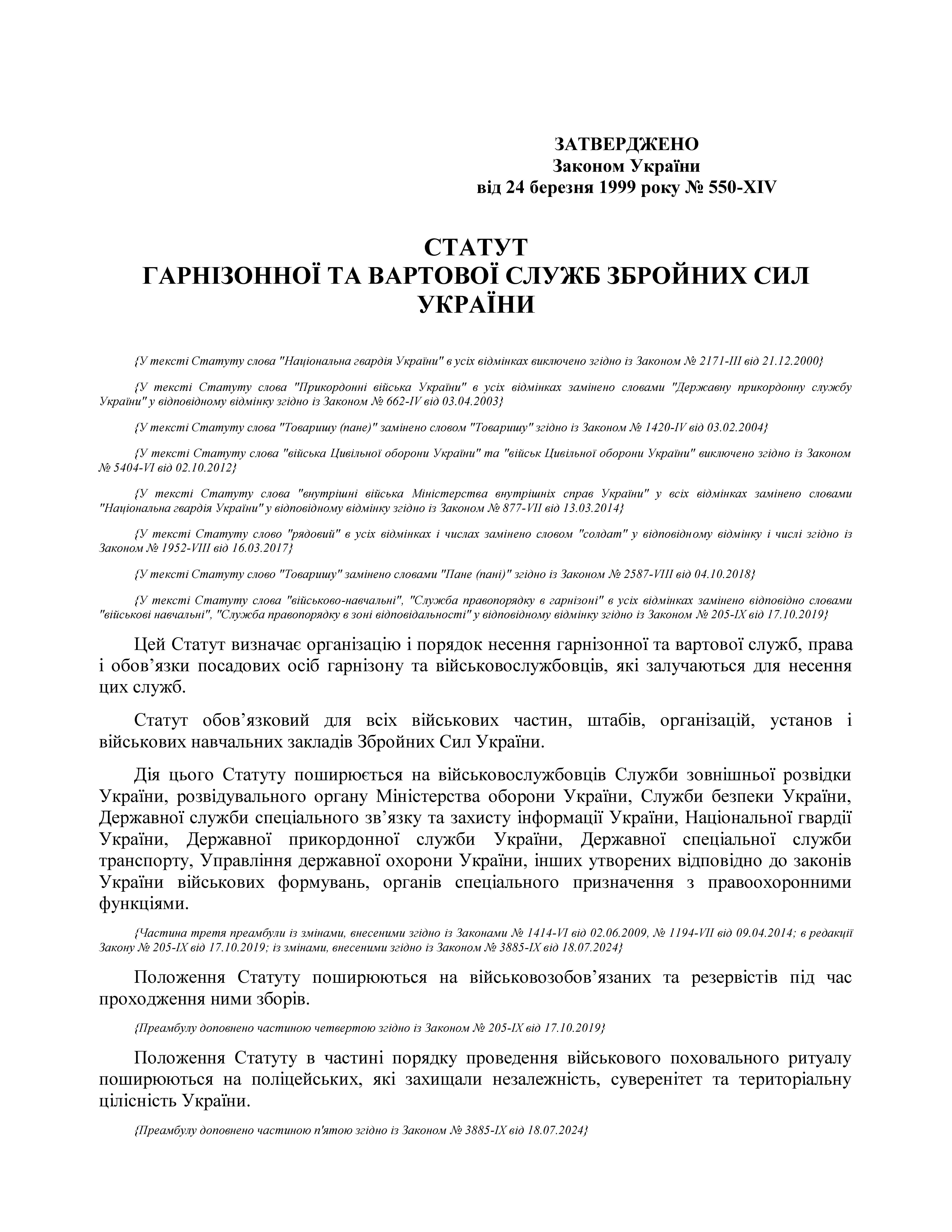 Статут гарнізонної та вартової служб ЗСУ (Збройних Сил України).