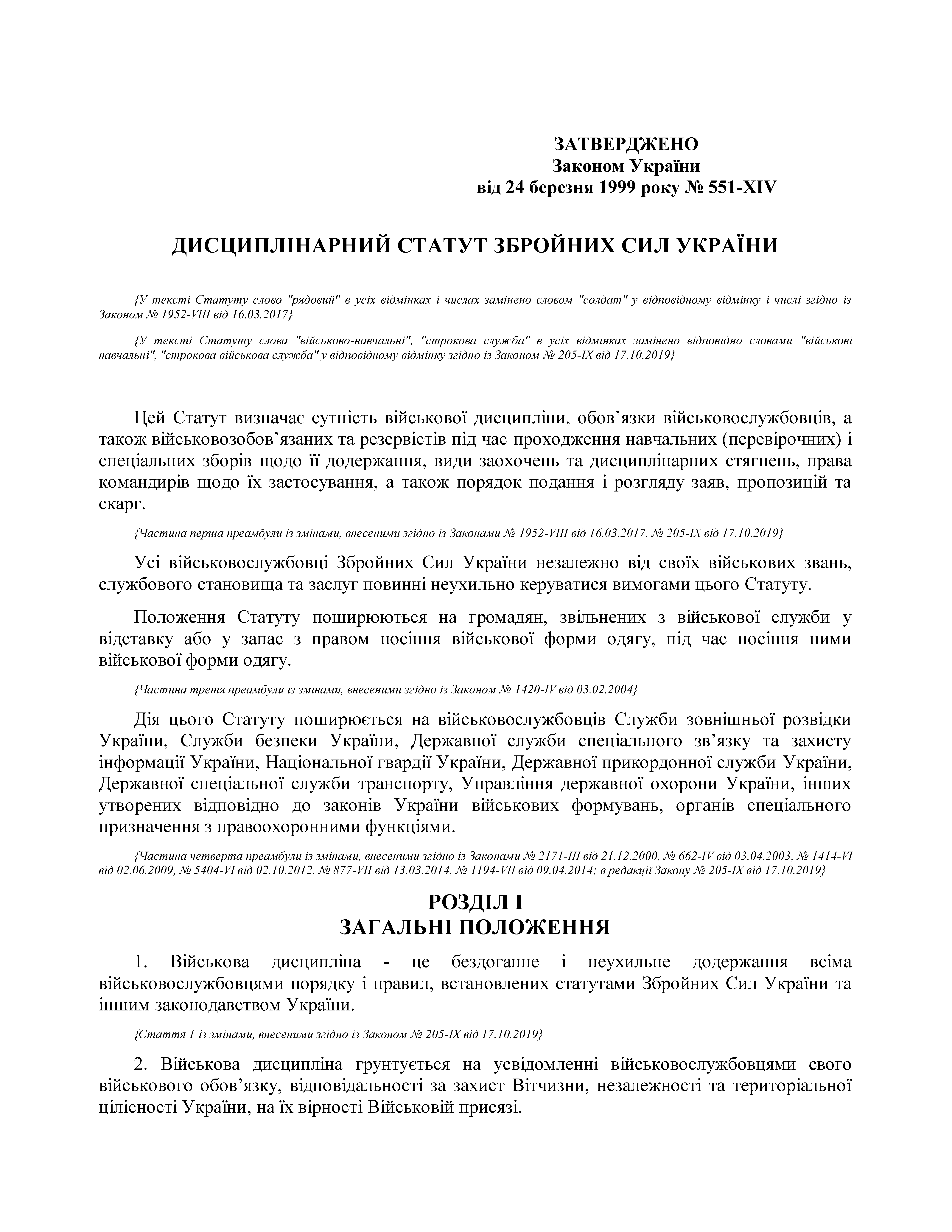 Дисциплінарний статут ЗСУ (Збройних Сил України).