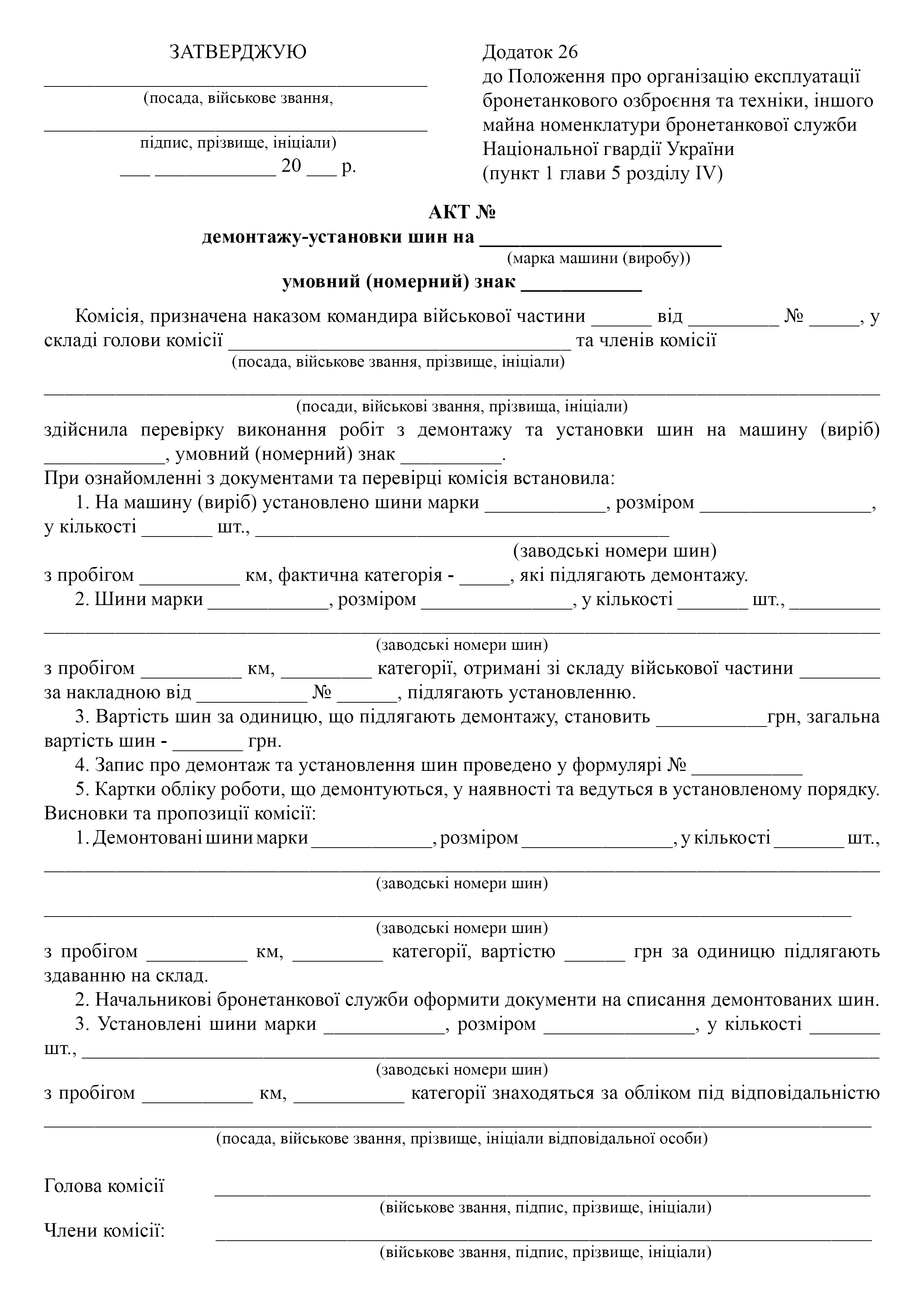 Акт демонтажу-установки шин.