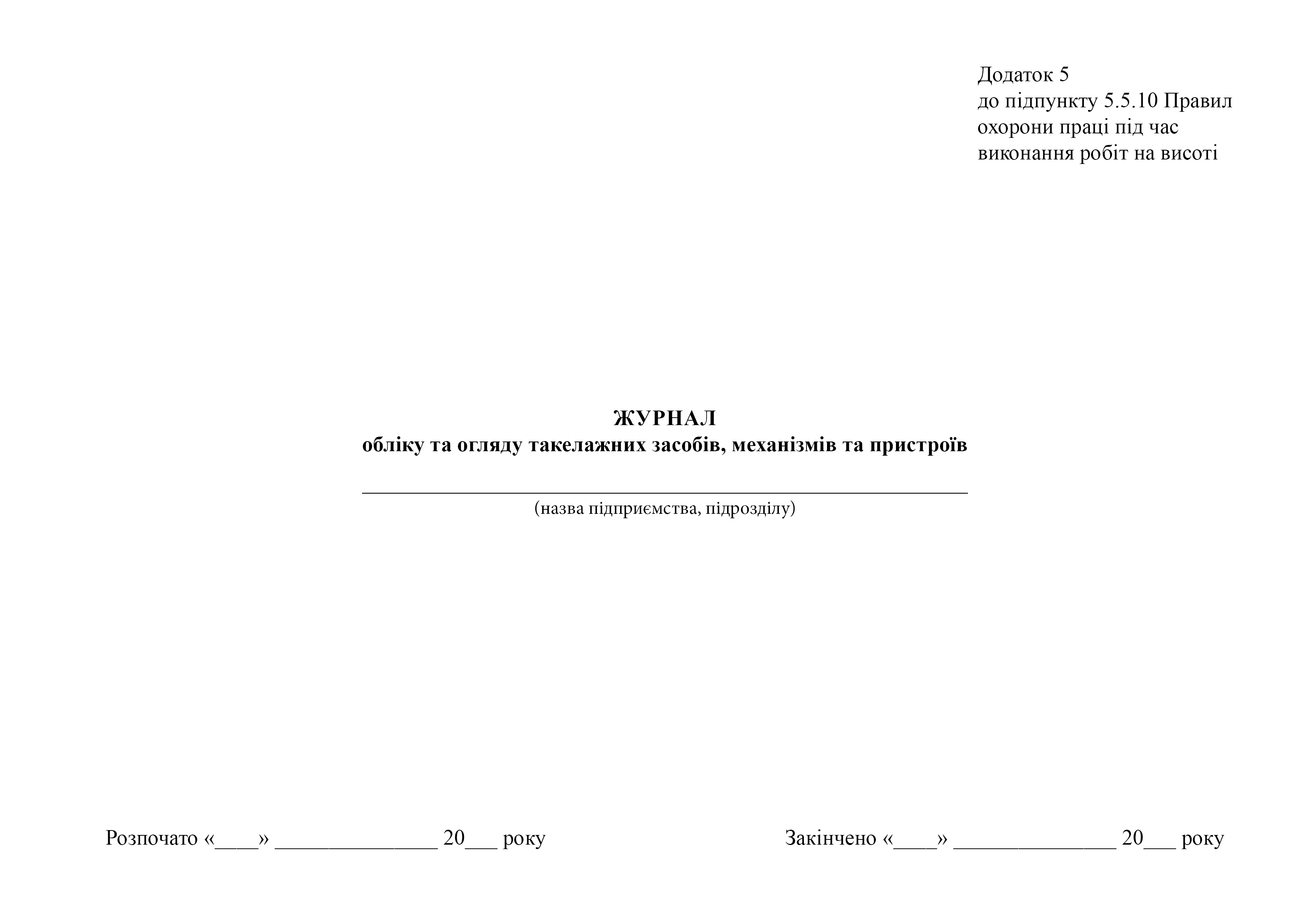 Журнал обліку та огляду такелажних засобів, механізмів і пристроїв.