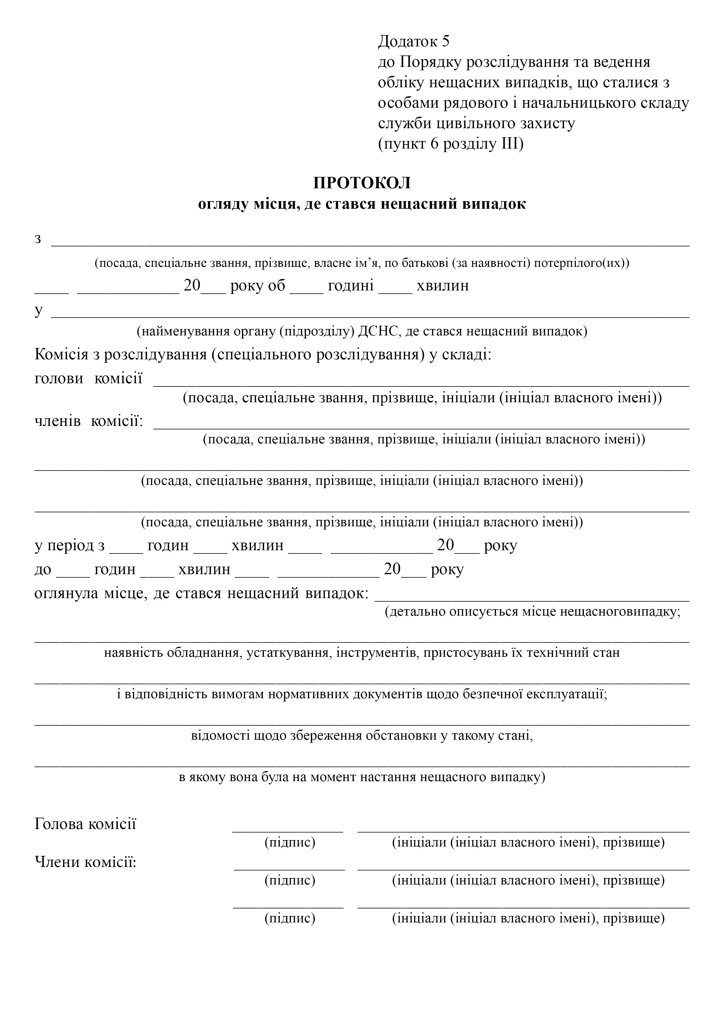 Протокол огляду місця, де стався нещасний випадок.