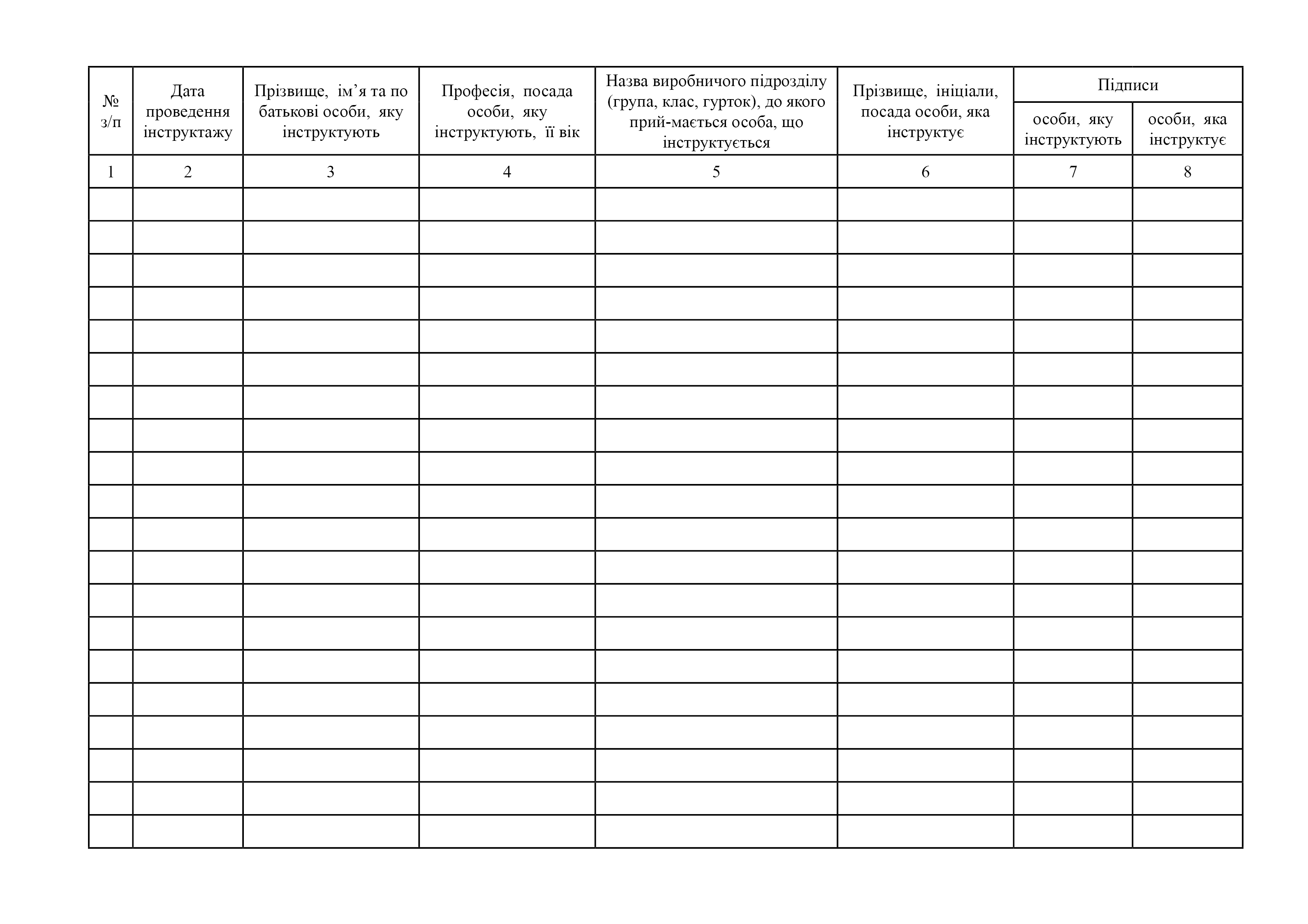 Журнал реєстрації вступного інструктажу з питань охорони праці.